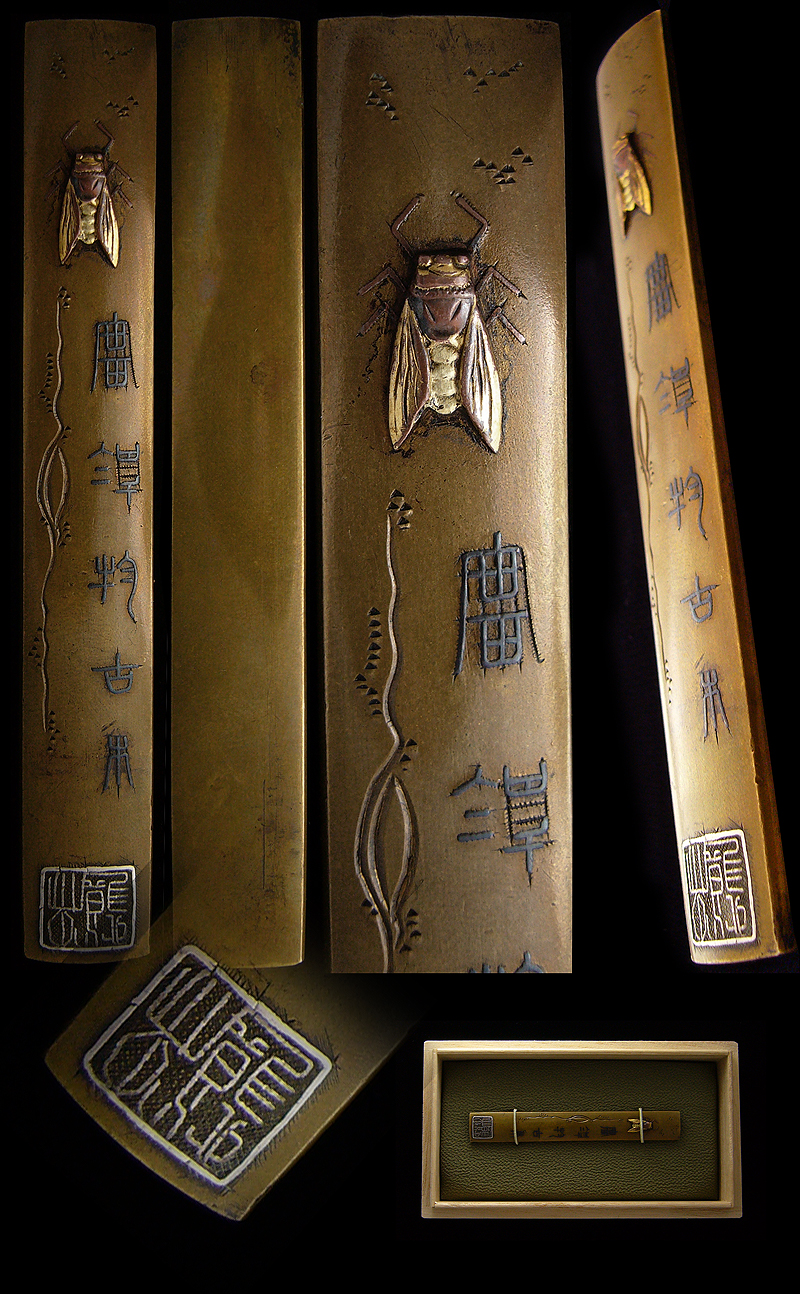 Kozuka:Mumei On the nice brass plate, a chicada is engraved