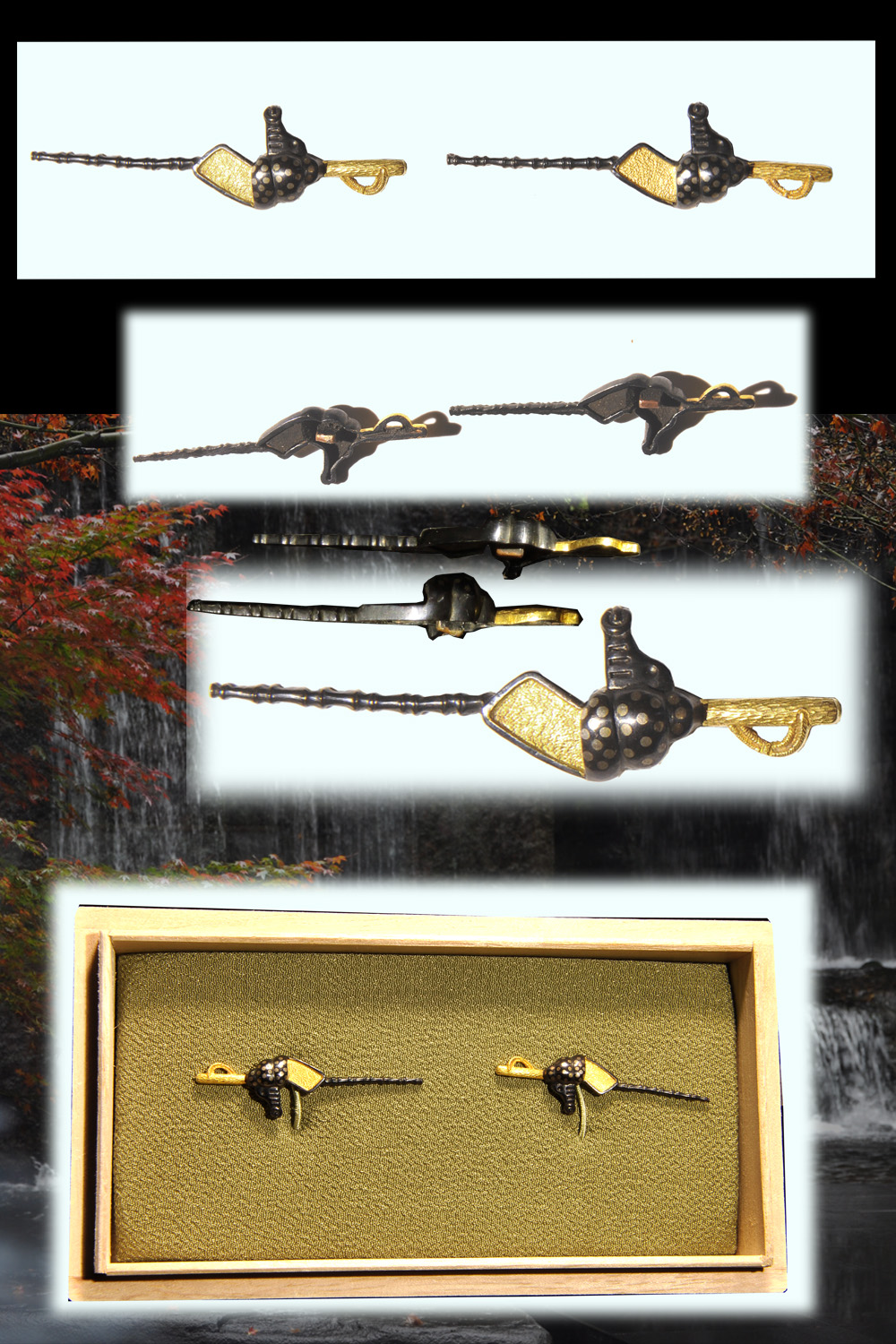 Special feature: On the Shakudo plate, whip is engraved with gold color.