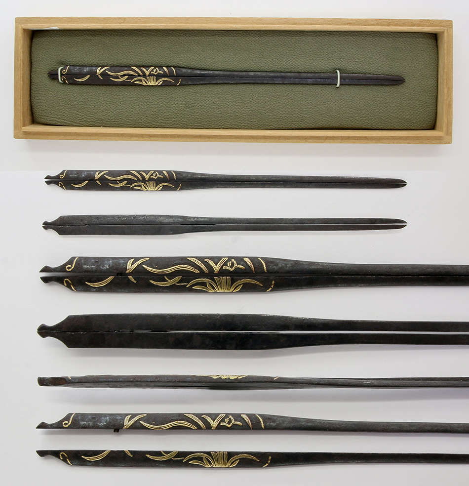 Special feature: Elephant and a person engraved on Mokko shape iron tsuba with gold and silver inlay.