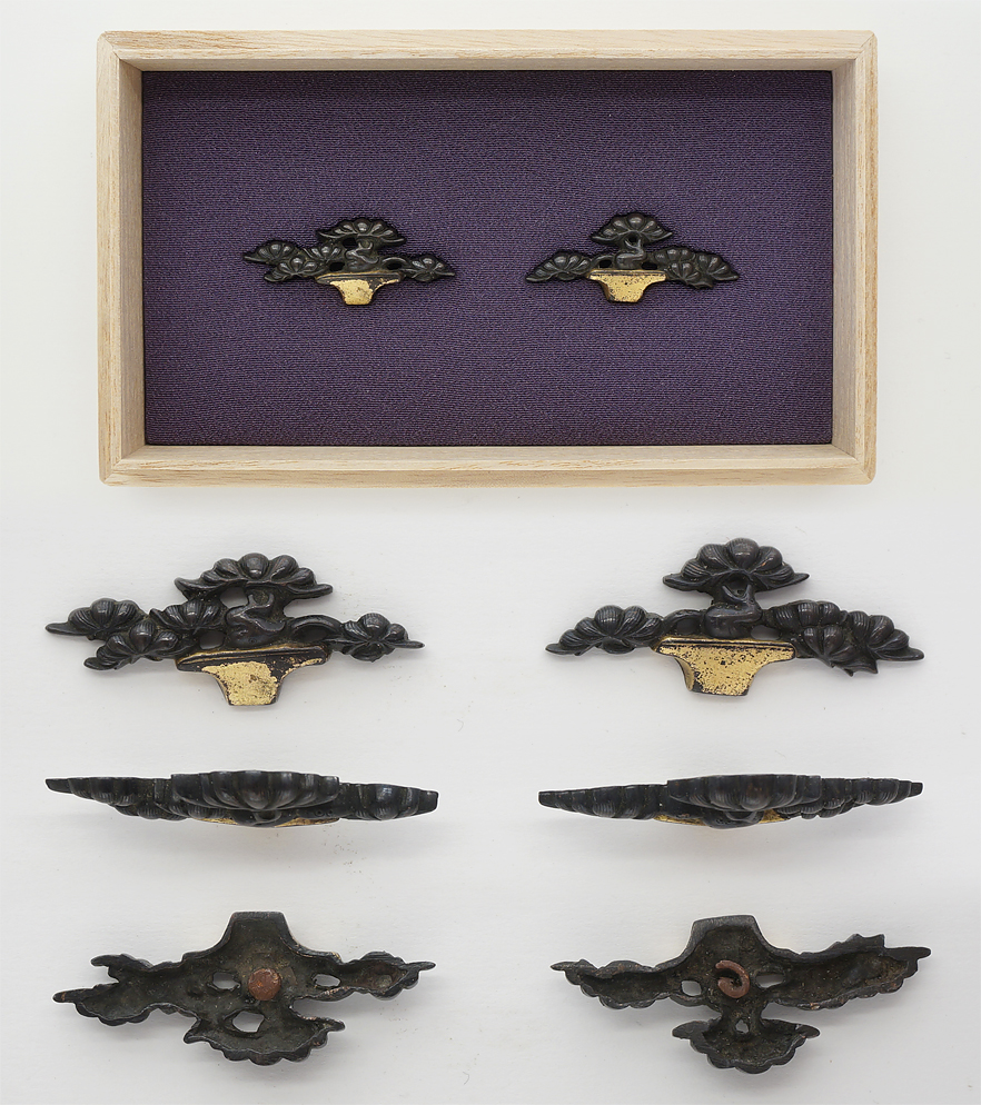 Special feature : On the syakudo nanako plate, Bonsai and Japanese brush are engraved with gold color