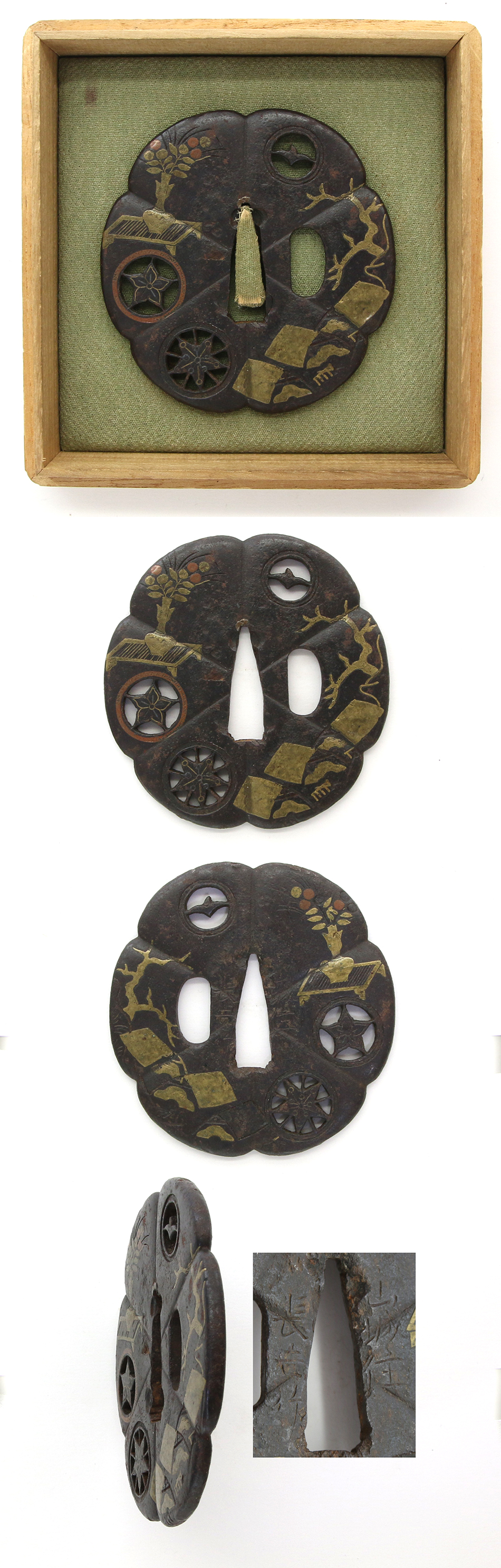 Special feature: Iron Tsuba, family crests are engraved with open work.