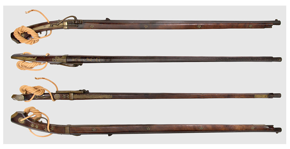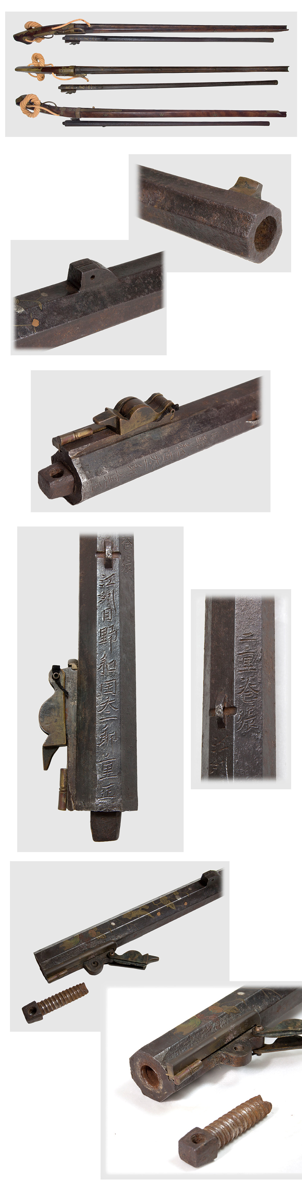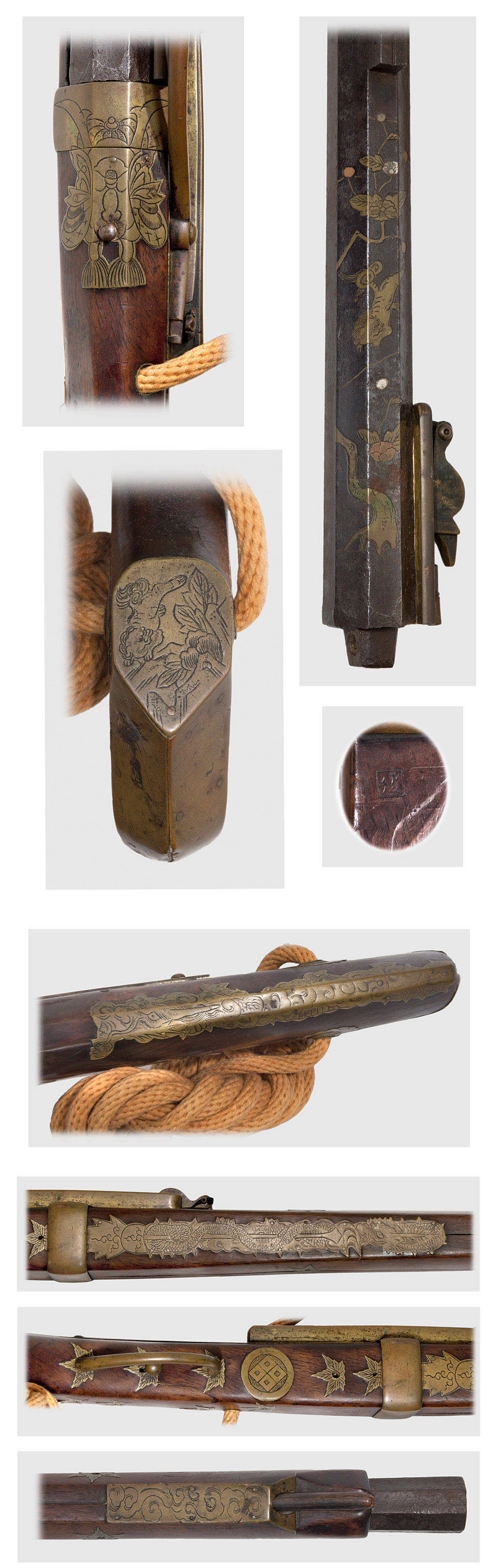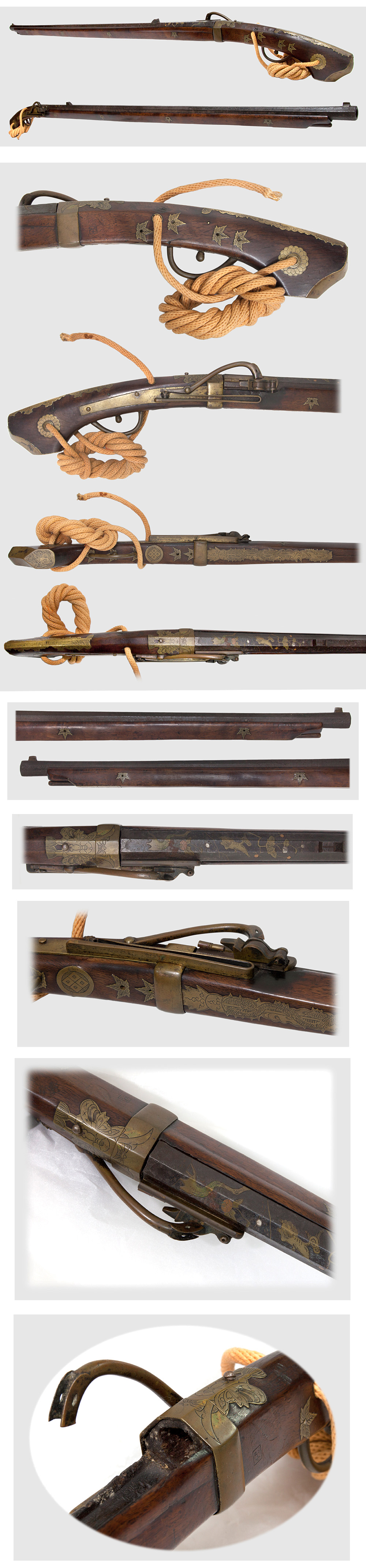 Upper part of the gun is engraved a tiger and flowers by brass inlay.