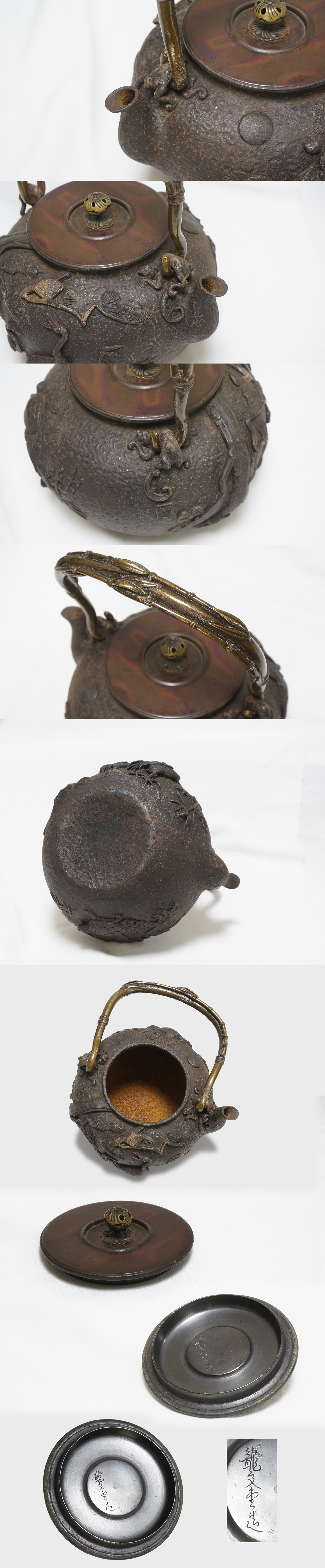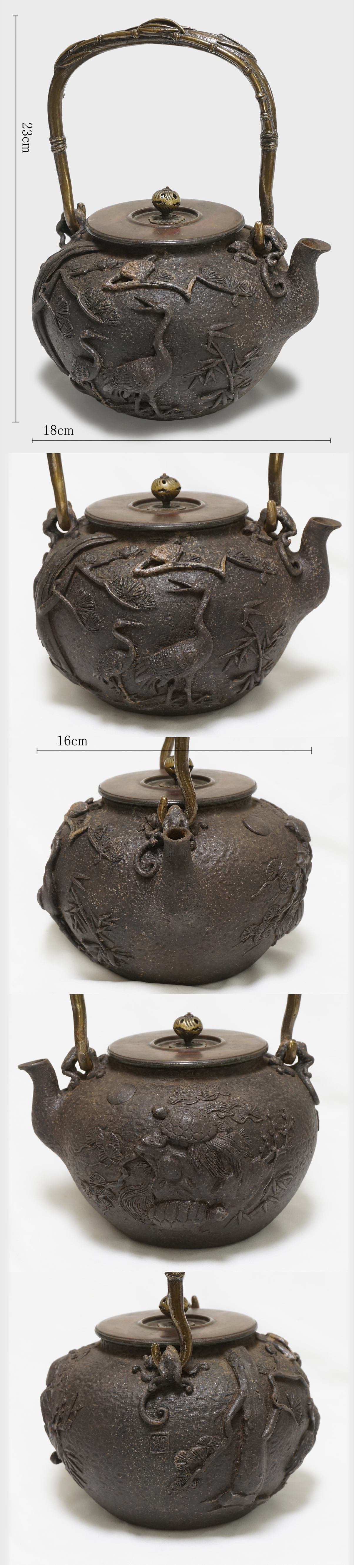 Crane and Turtle Motif Iron kettle