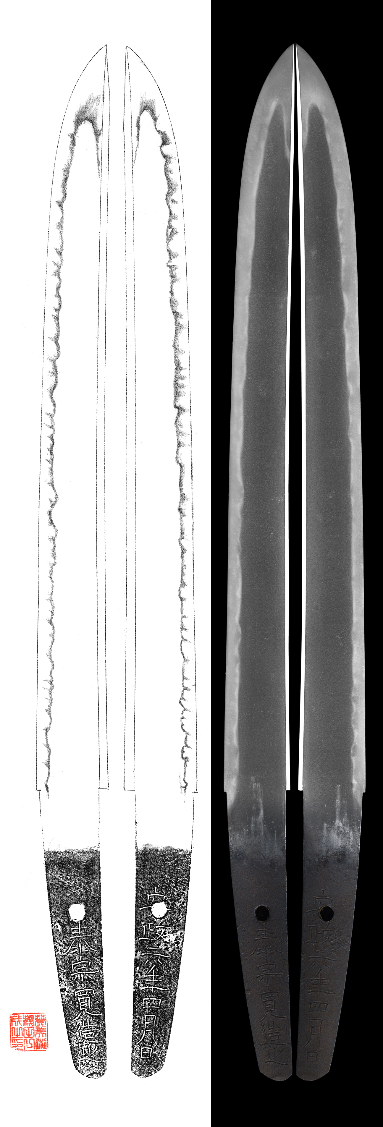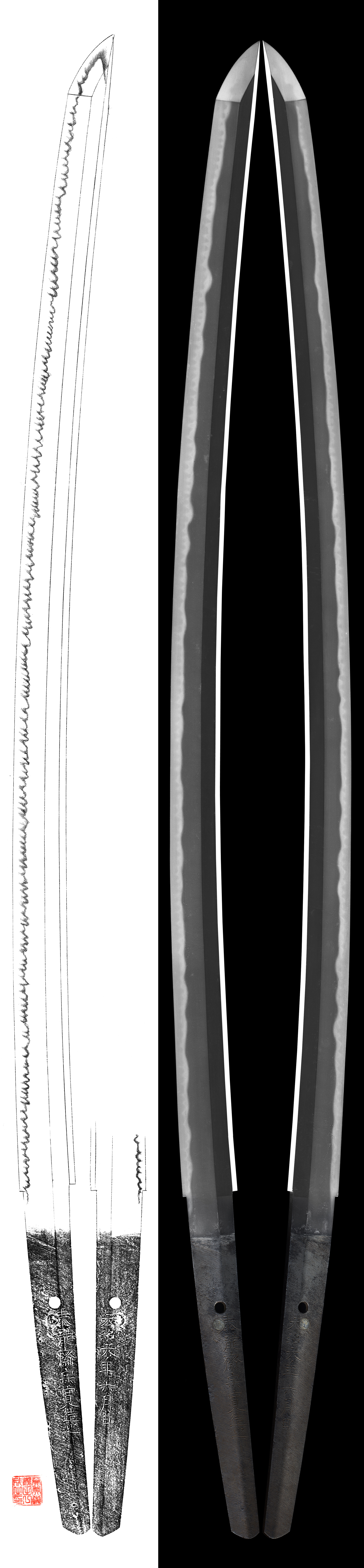 Shape : wide and thick with Sori, this is healthy blade. Kissaki is long.