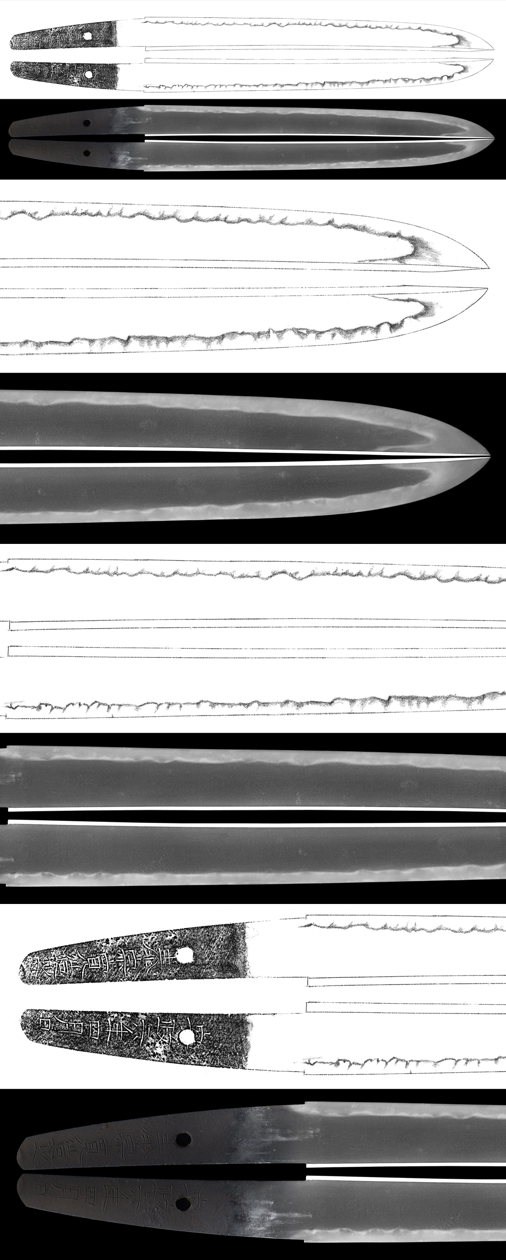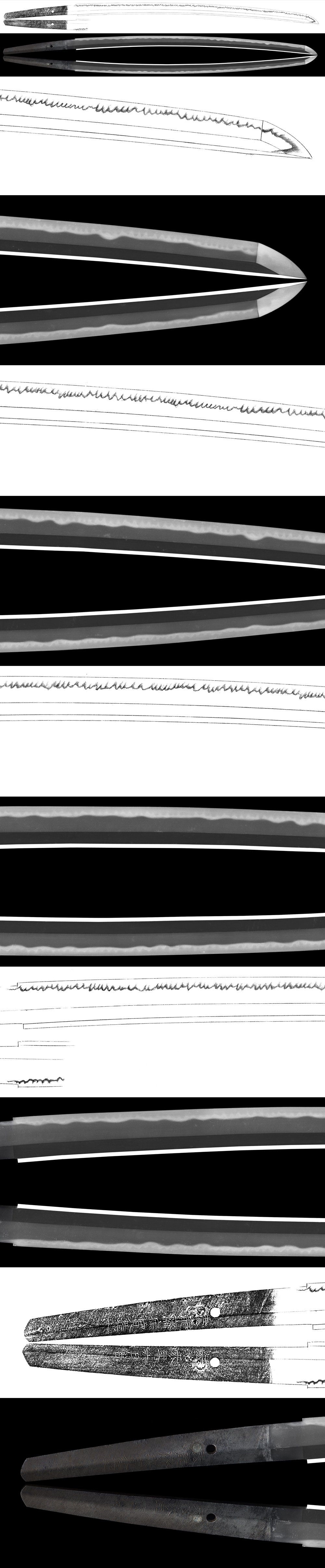 Hamon : Ko-niedeki Ko-gunome Midare, deep Nioikuchi. There are Ashi.