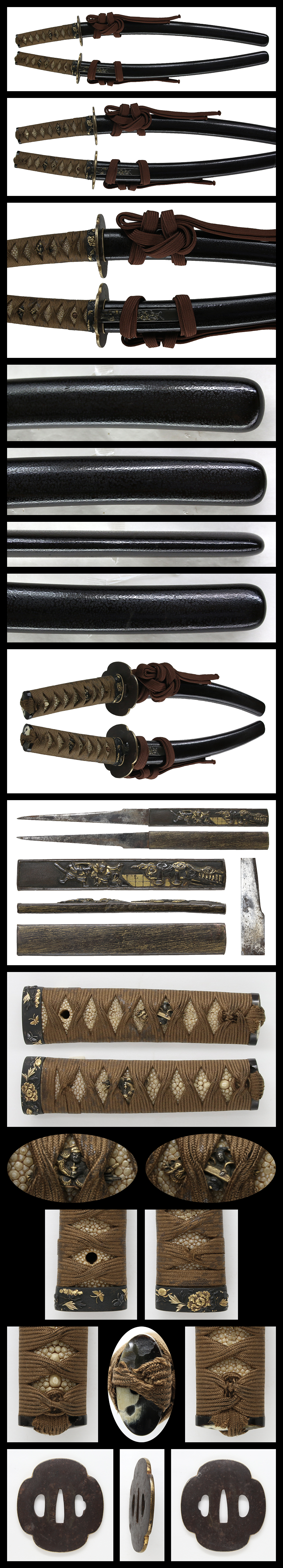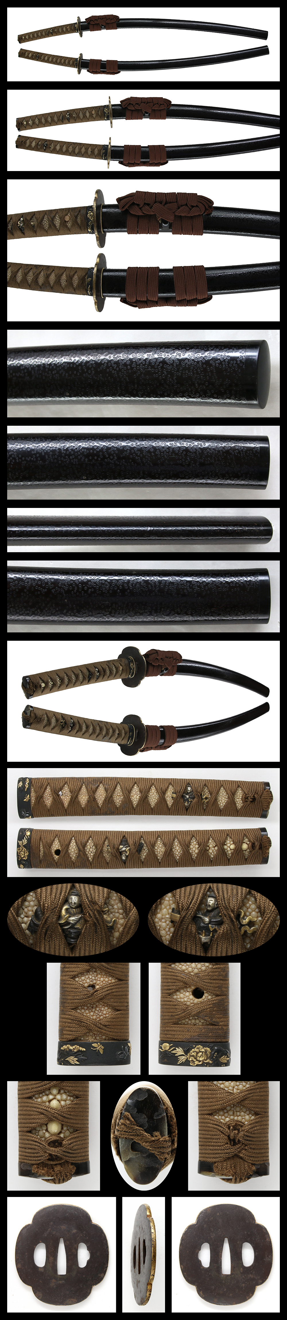 Generally when wearing a sword to the castle, people used short size daisho. The tsuka kashira is usually tsuno style.