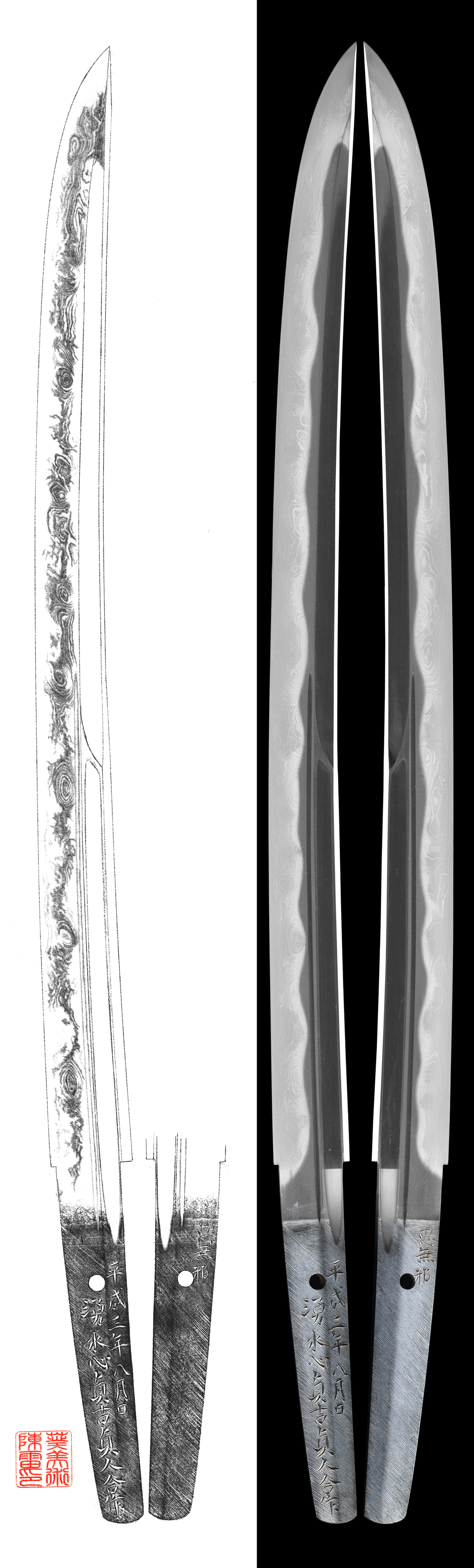 “Yusuishin” of his signature means clear spring water. And so, he might use clear springwater for making swords.