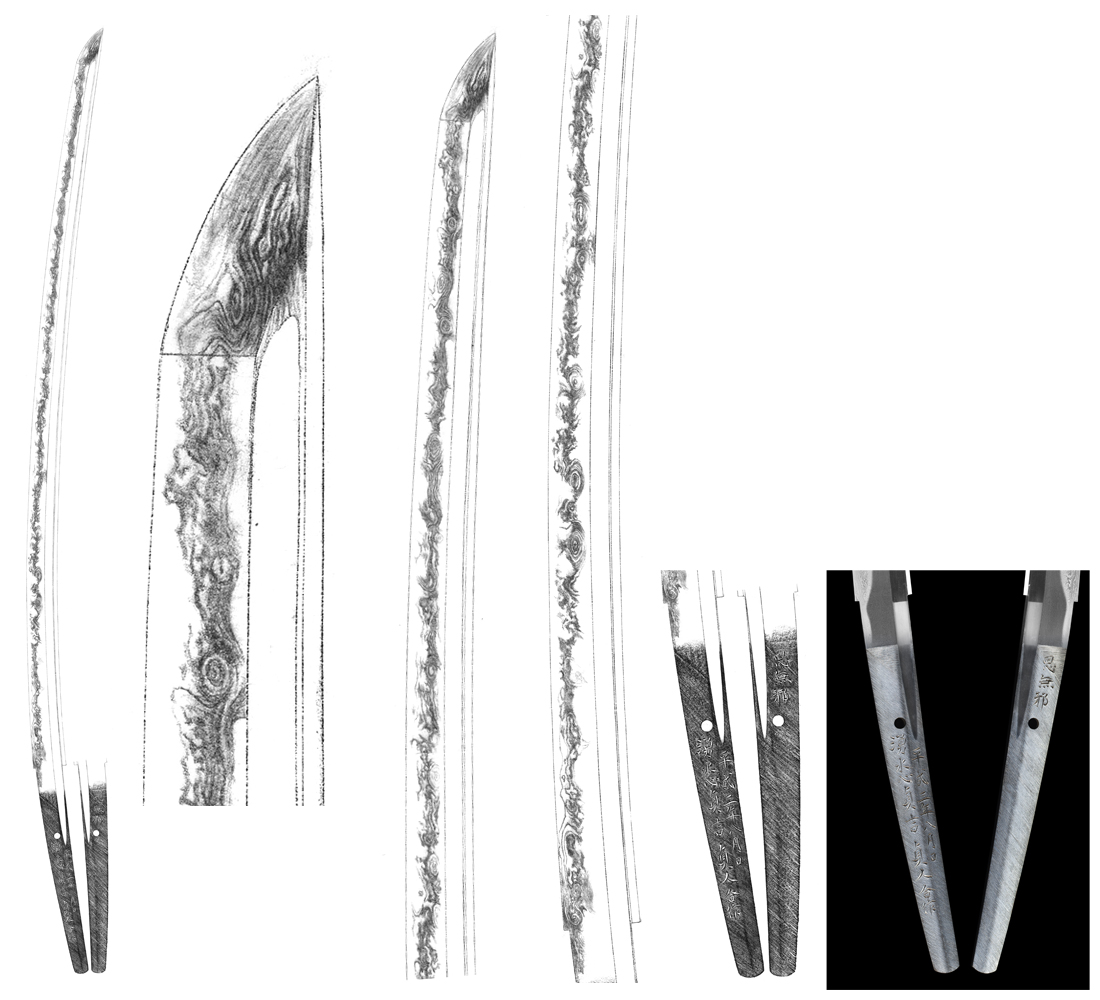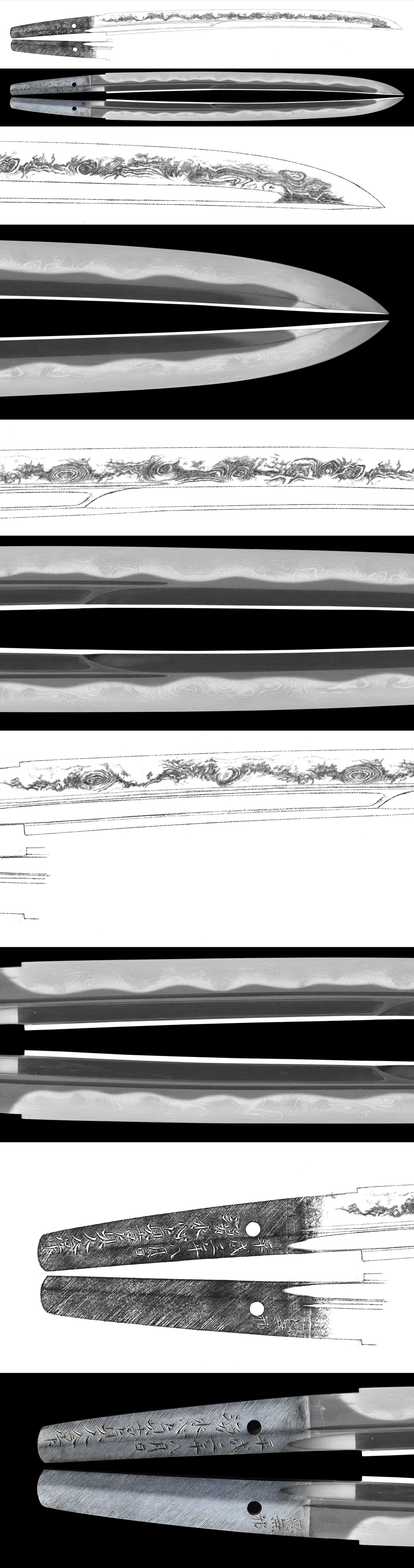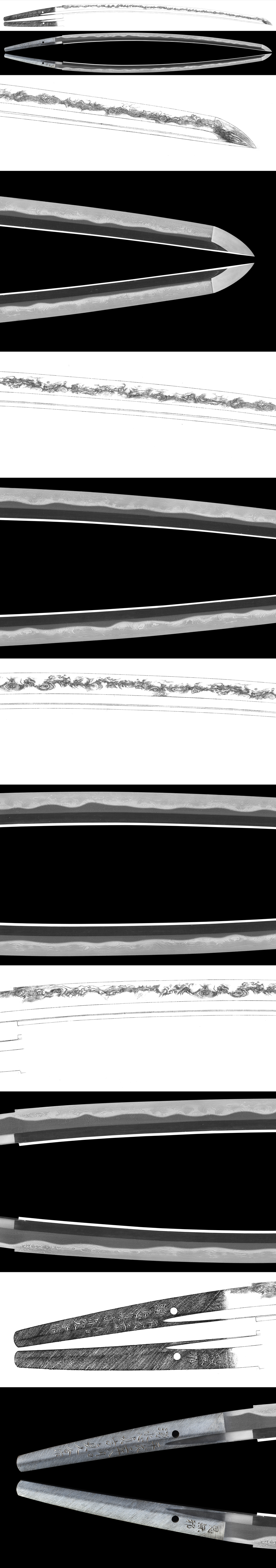 Hamon : Nie deki Gunome midare. In Ha, there are many Sunagashi and Kinsuji.