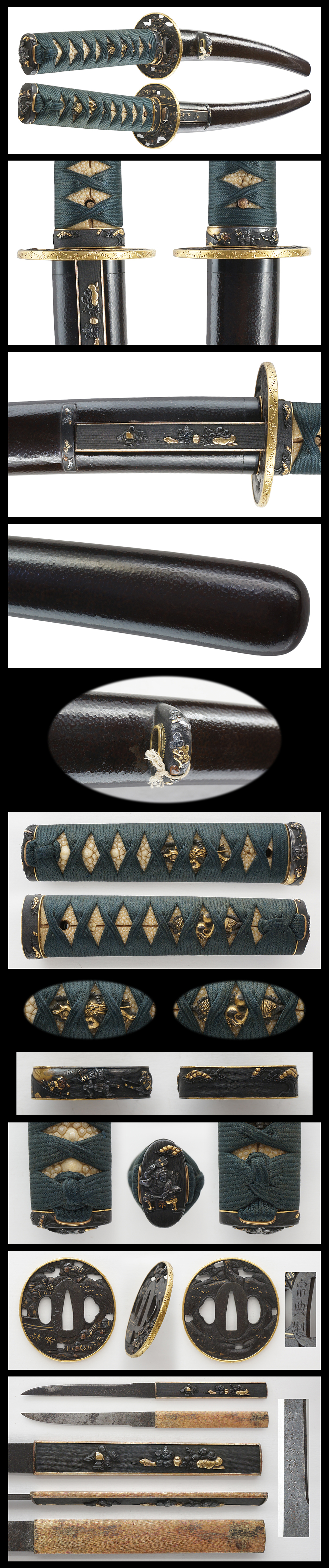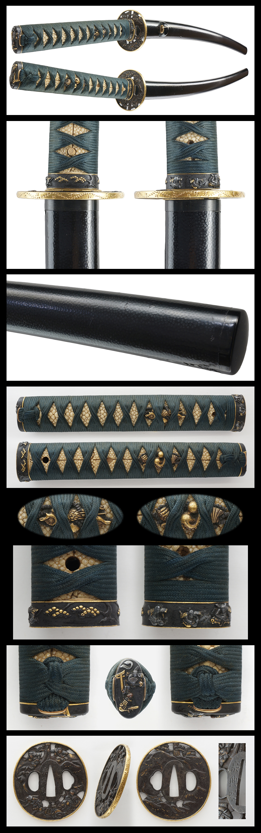 Kozuka: Shakudo Nanako, gods of fortune are engraved wiht gold color.
