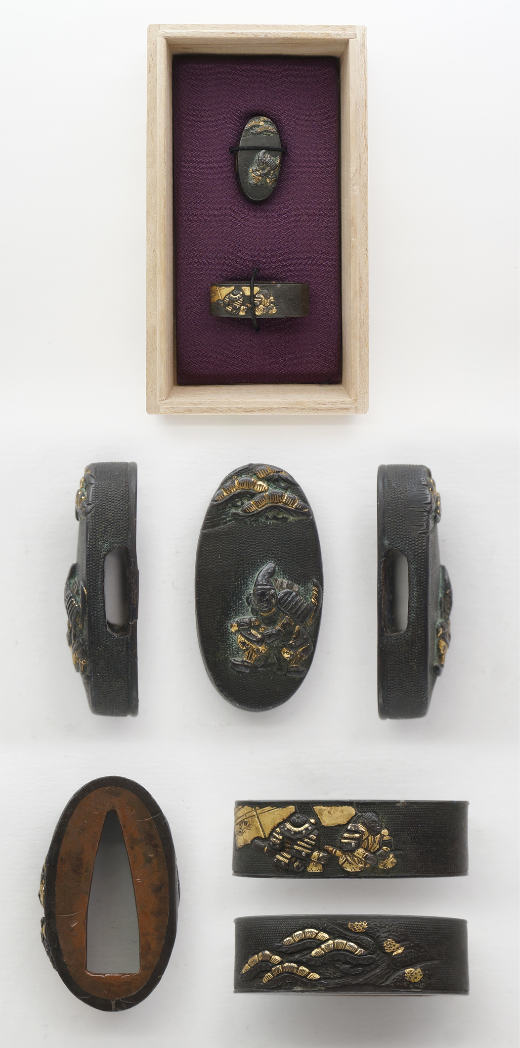 Special feature: Shakudo Nanako, Samurai and pine tree are engraved with gold color.