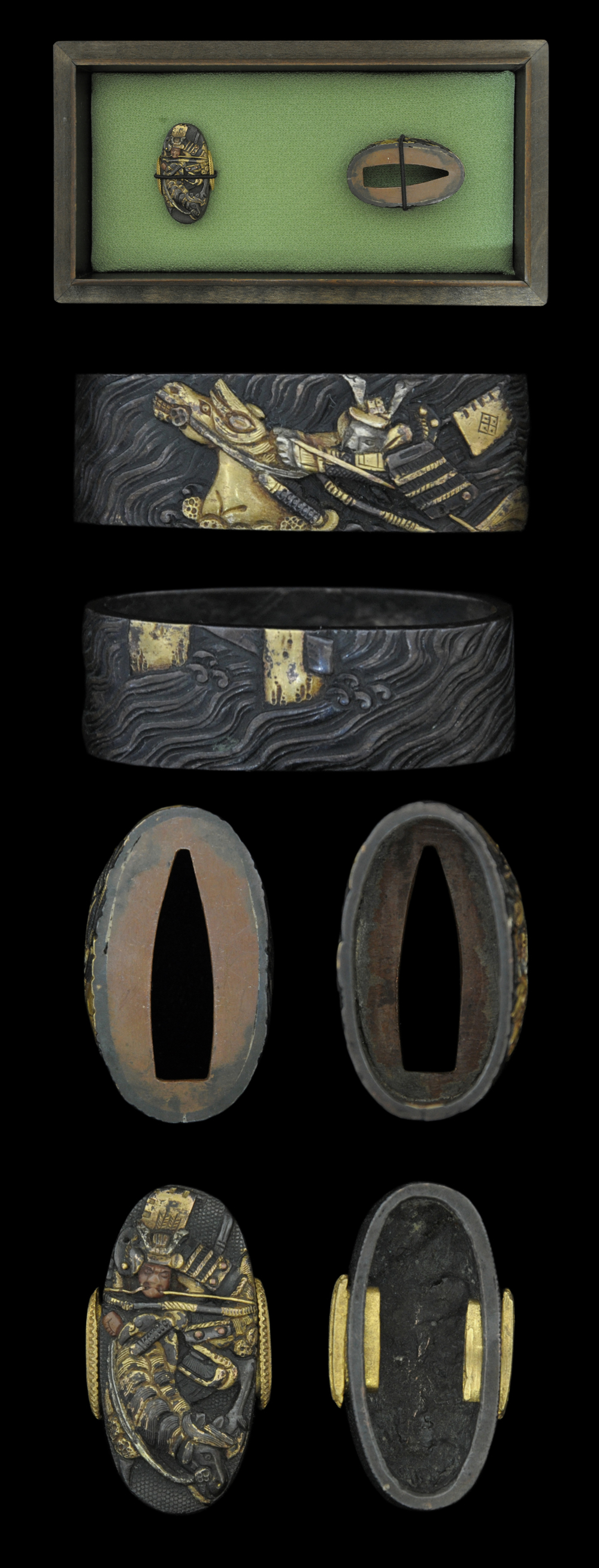 Special feature: On the Shakudo plate, the Samurai with horse is engraved with gold and silver color.