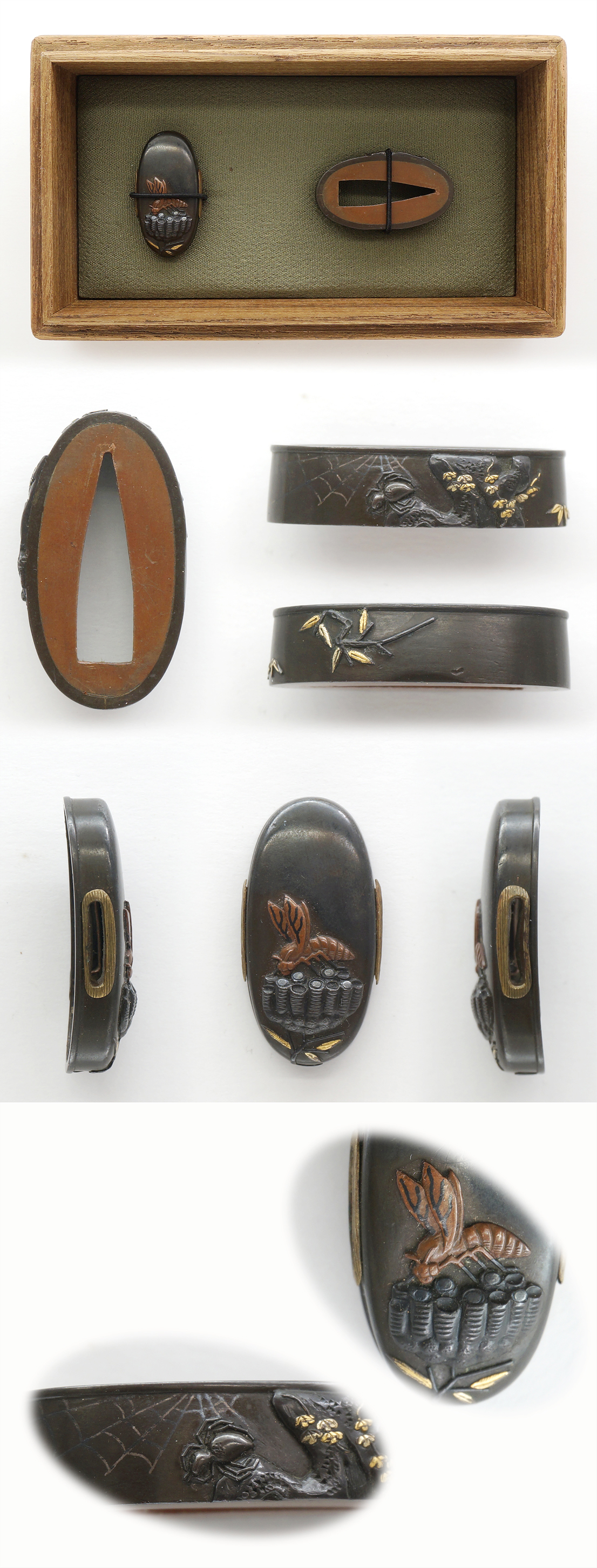 Fuchi Kashira: Mumei (unsigned) Bee and Spider Design