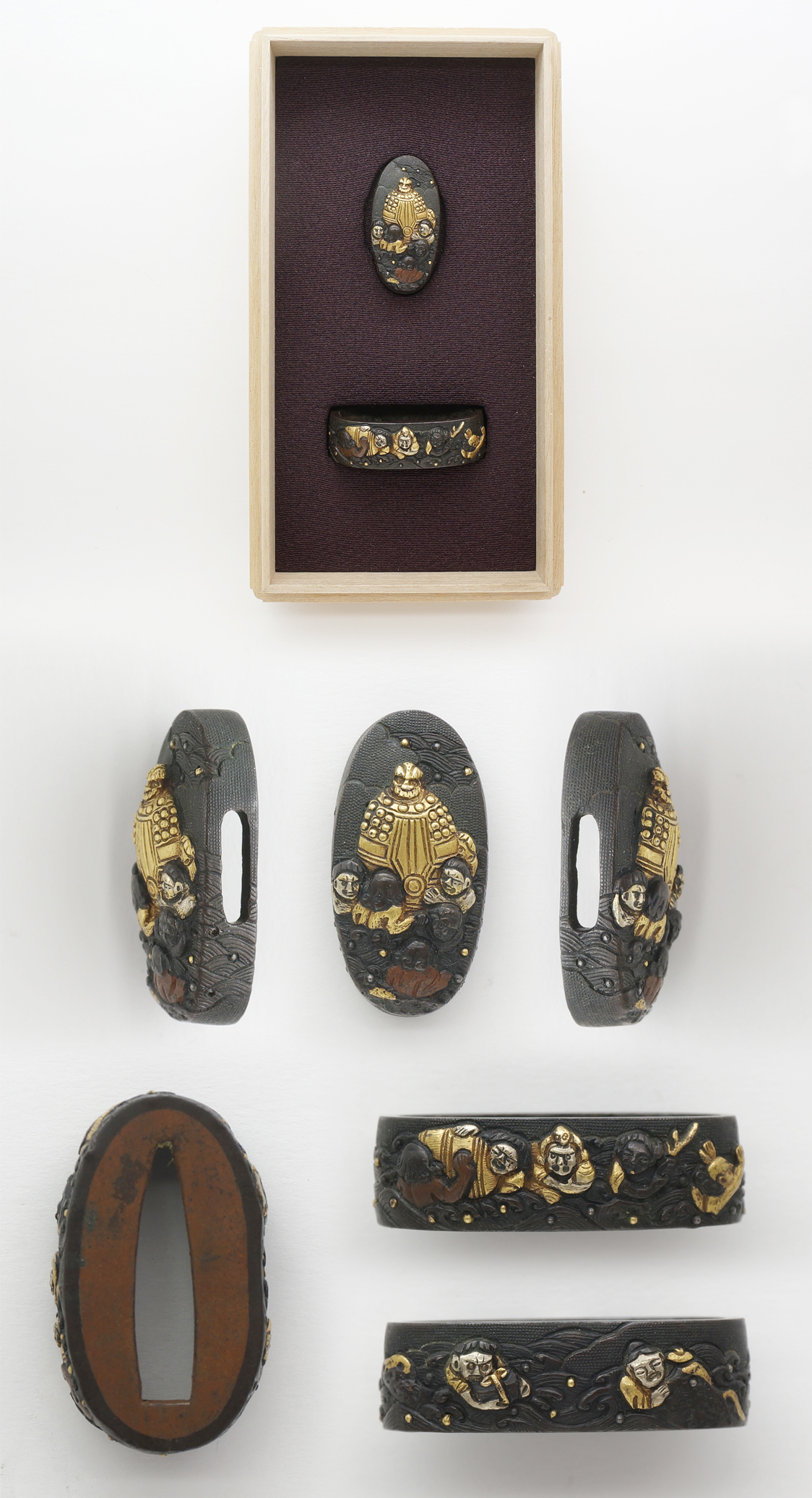 Fuchi Kashira: Mei (signature) : Goto Senjo Fuchi Length : 3.74 cm x 2.16 cm x 1.25 cm (1.47 inchs x 0.85 inches x 0.49 inches) Kashira Length : 3.32 cm x 1.64 cm x 0.78 cm (1.30 inchs x ...