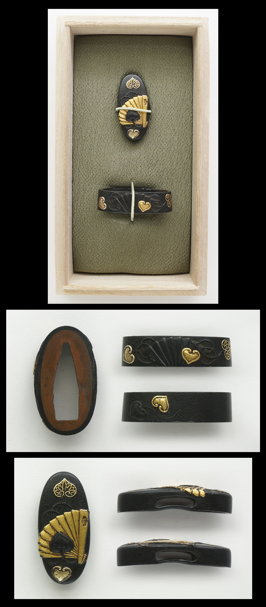 Fuchi Kashira: Mumei (unsigned) Aoi Leaf and Fan Design