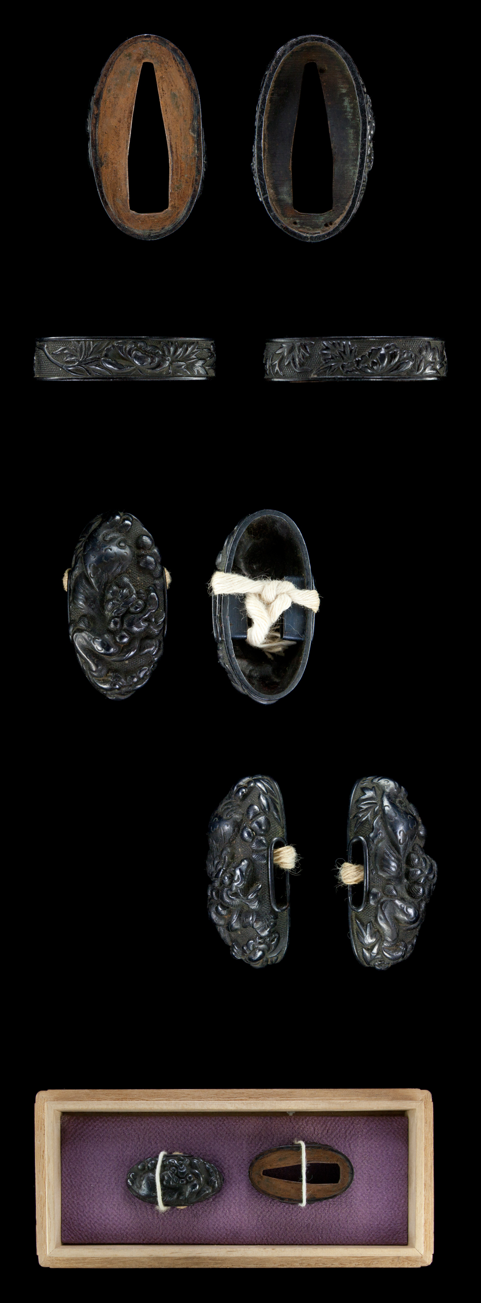 Special feature::On shakudounanakoji plate, tree peony design is engraved on the fuchi and Shishi dog is engraved on the kashira.