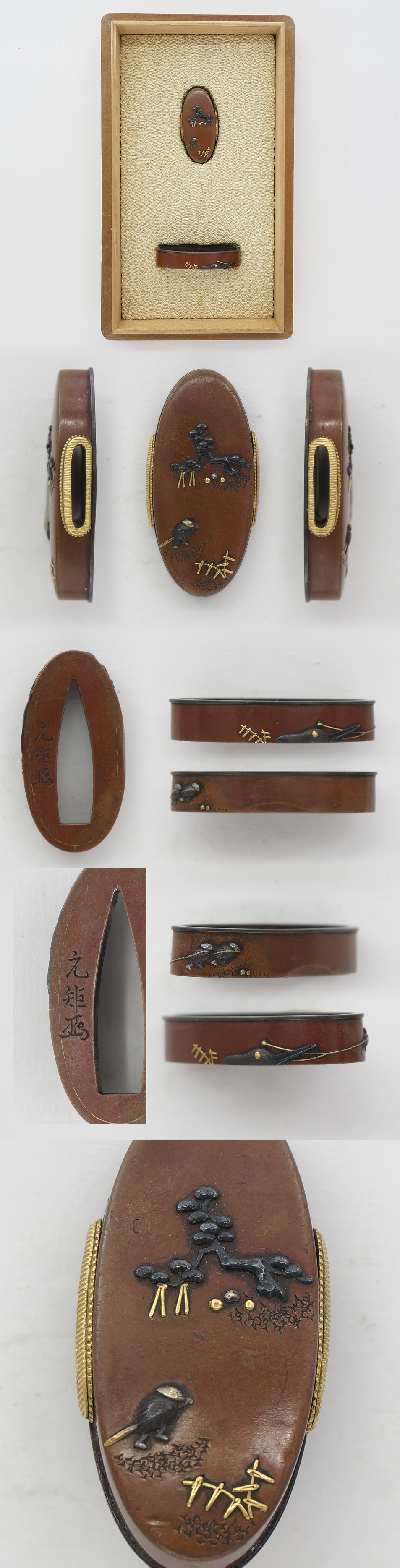 colored with gold, silver and Shibuichi on polished Suaka plate.