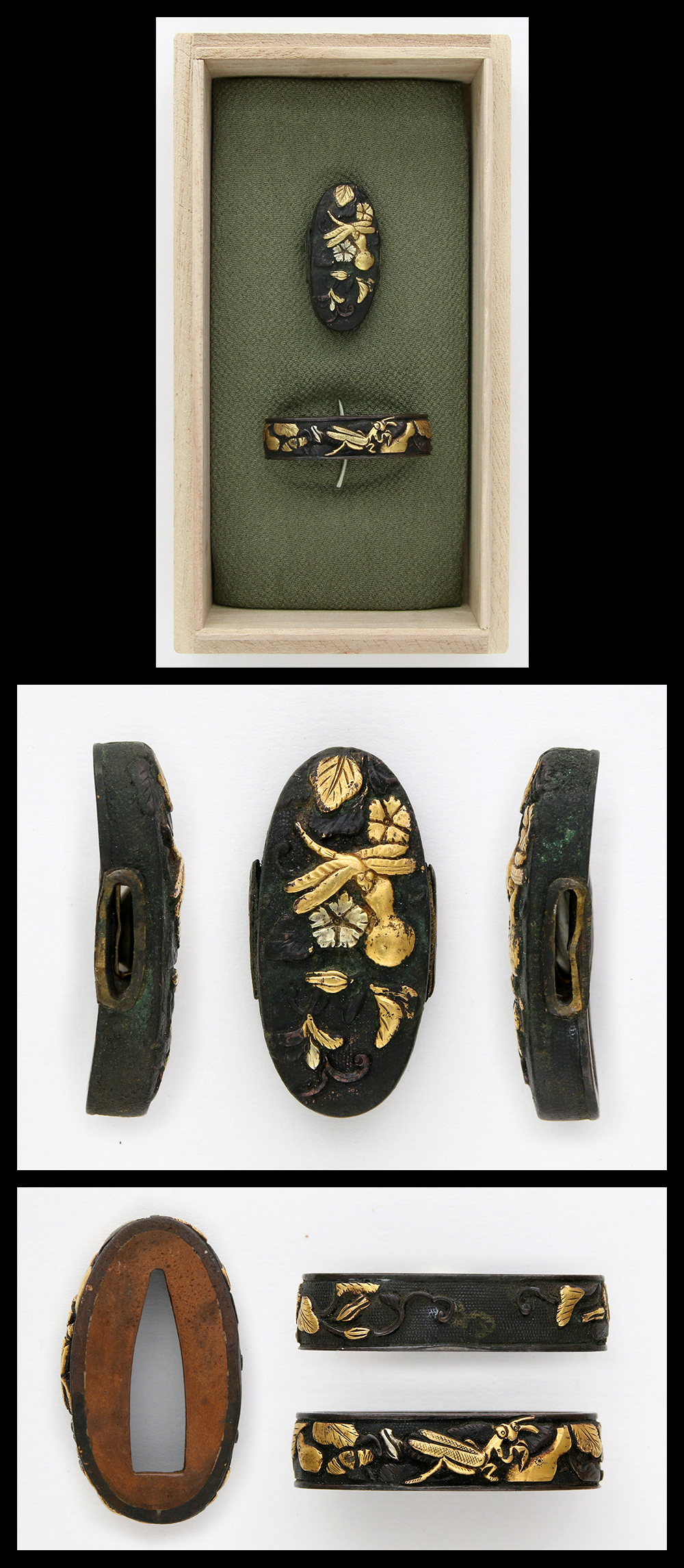 Special feature : Incects and grass carved on Shakudo Nanakoji plate.
