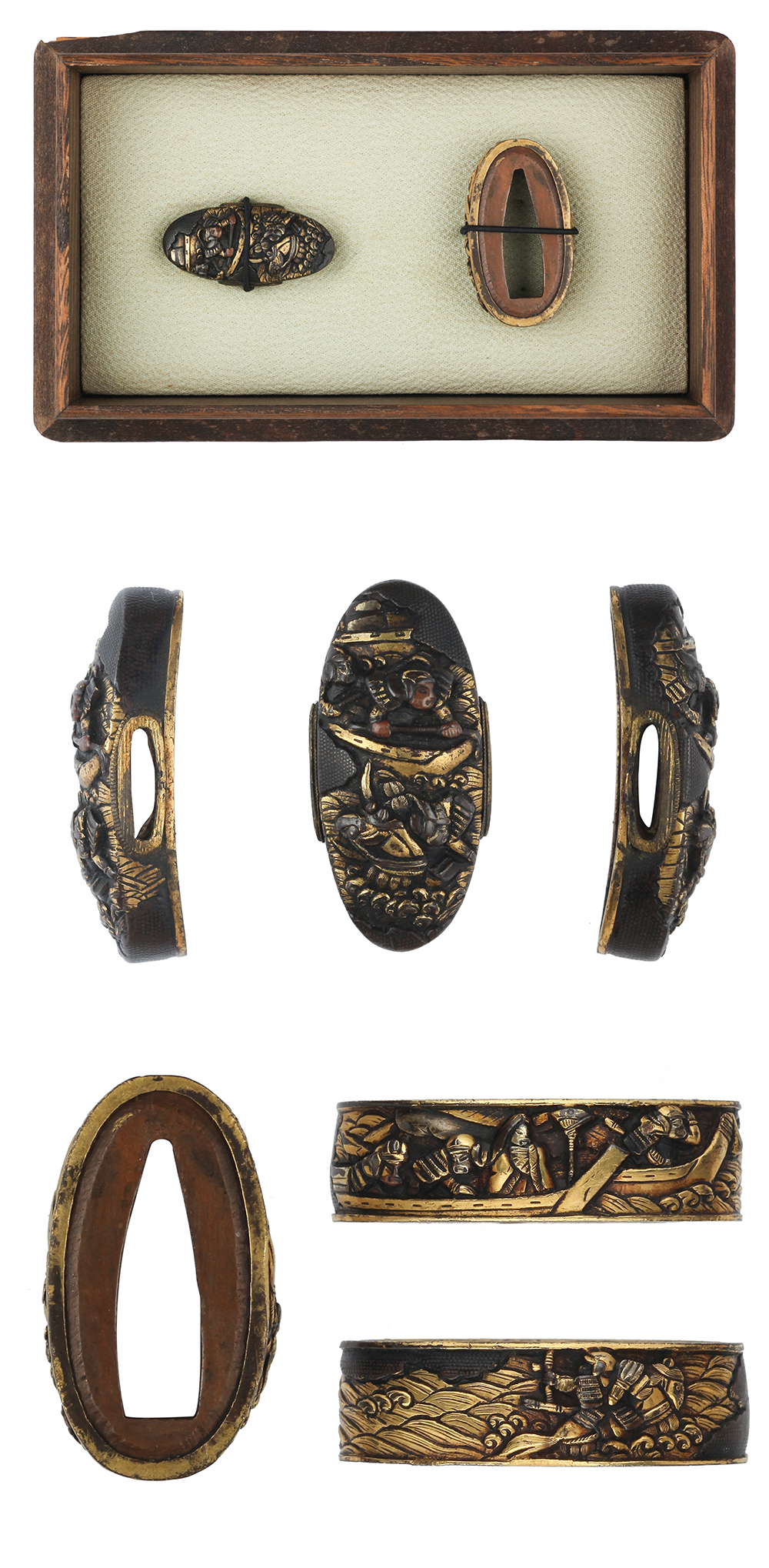 Special feature: On the Yamagane plate, Battle of Yajima motif is engraved. It is very nice engrave and also nice condition.