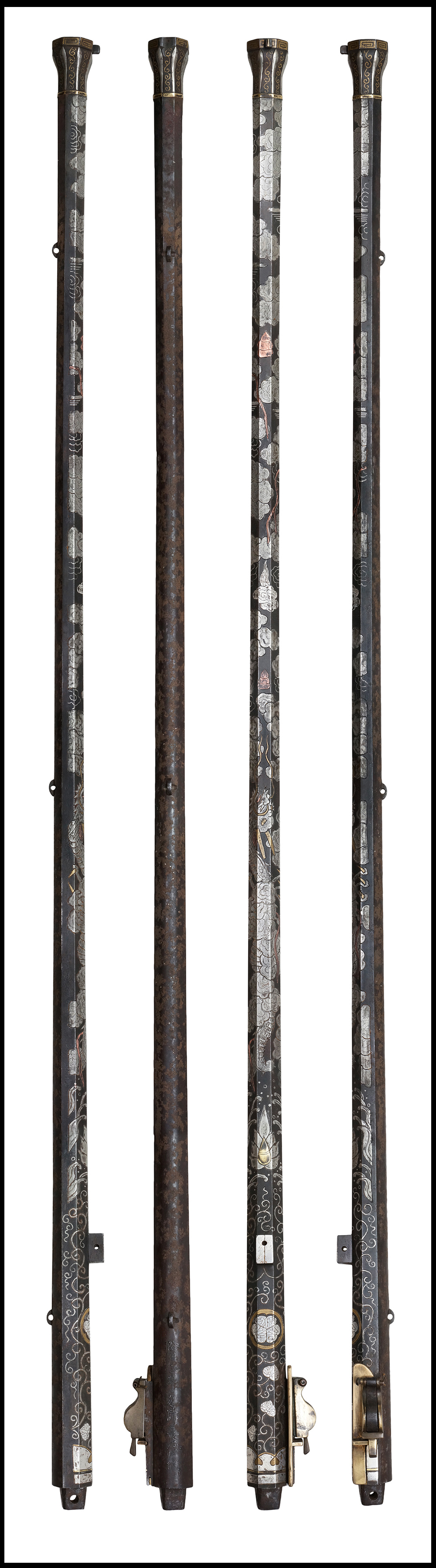 scallion. There is a cloth pattern inlay engraved in minute nunome zogan inlay. There is Aoi family crest and inlayed with gold.