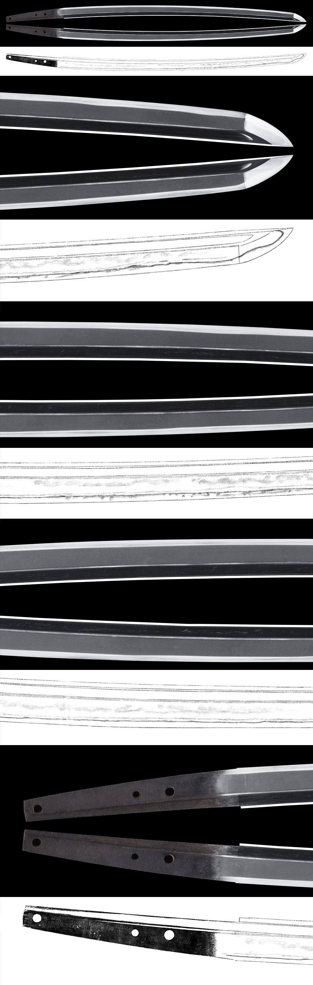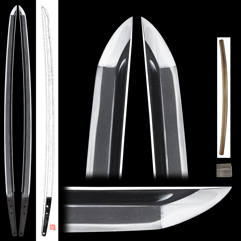 Shape : The blade is oosuriage mumei(cut shortened) with bo-hi is engraved on both sides of the blade.