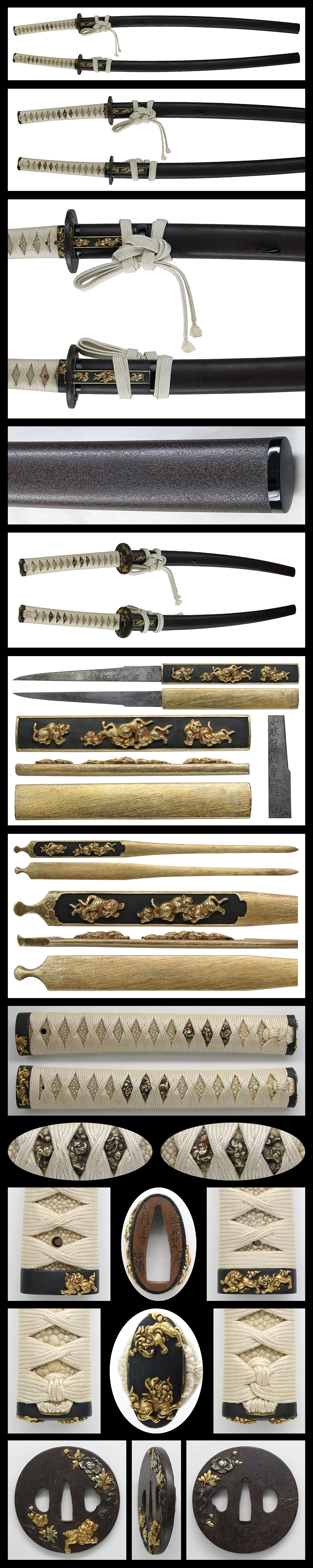 Katana in Shirasaya, with Koshirae (58th NBTHK Juyo paper) (NBTHK Hozon Paper for Kozuka and Kogai)