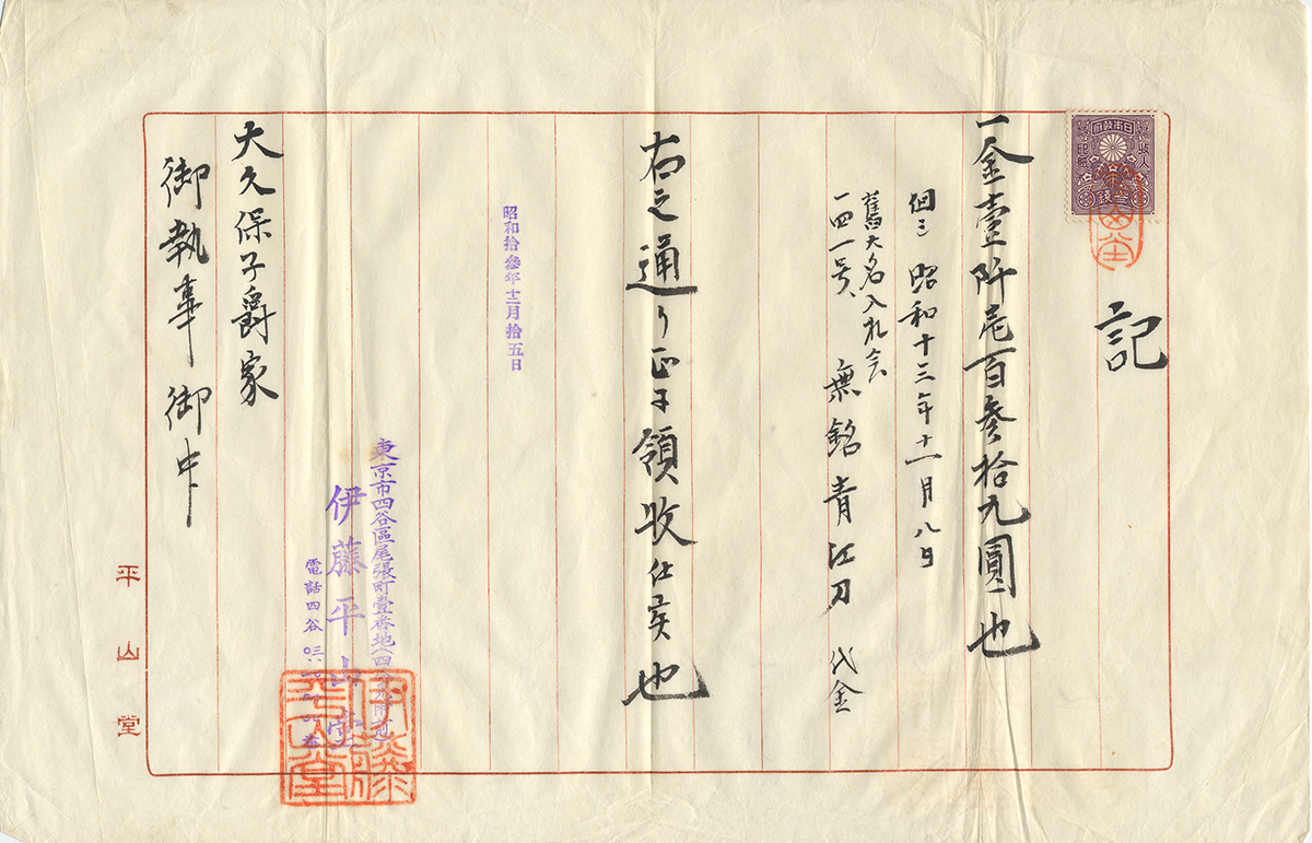 Ito Hesando's receipt to ookubo viscountcy House steward