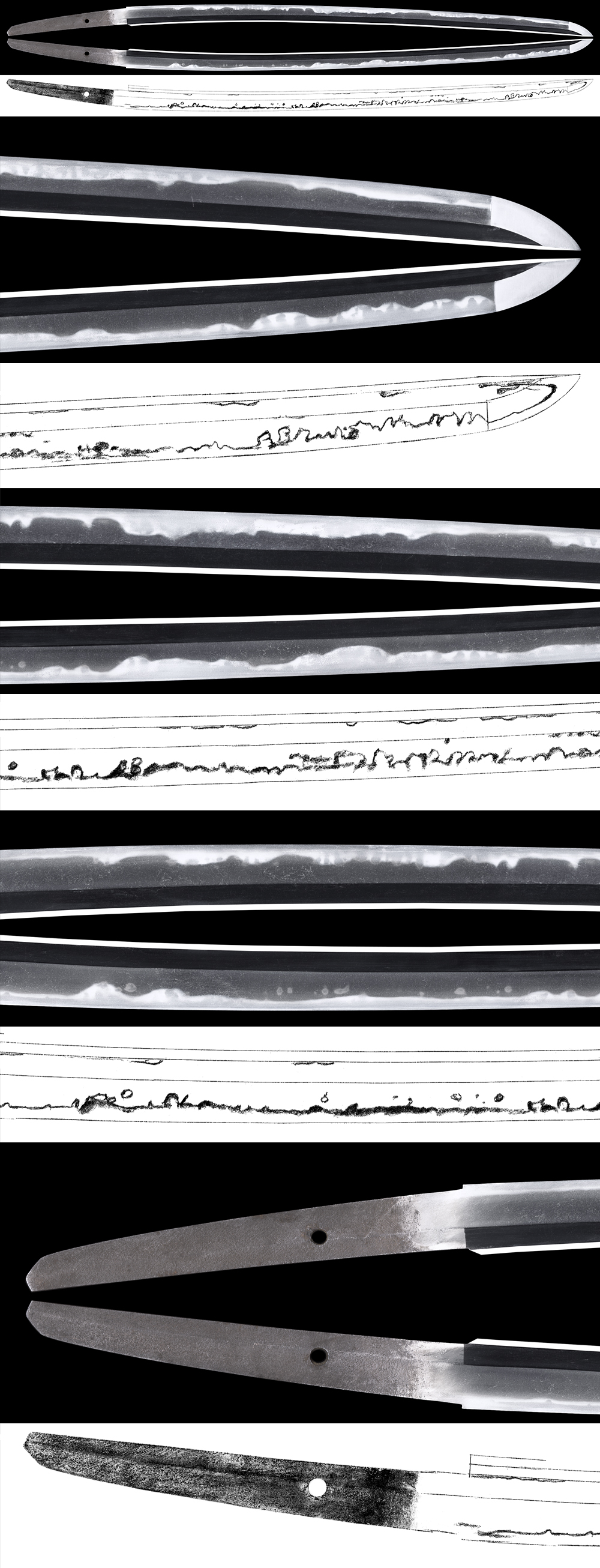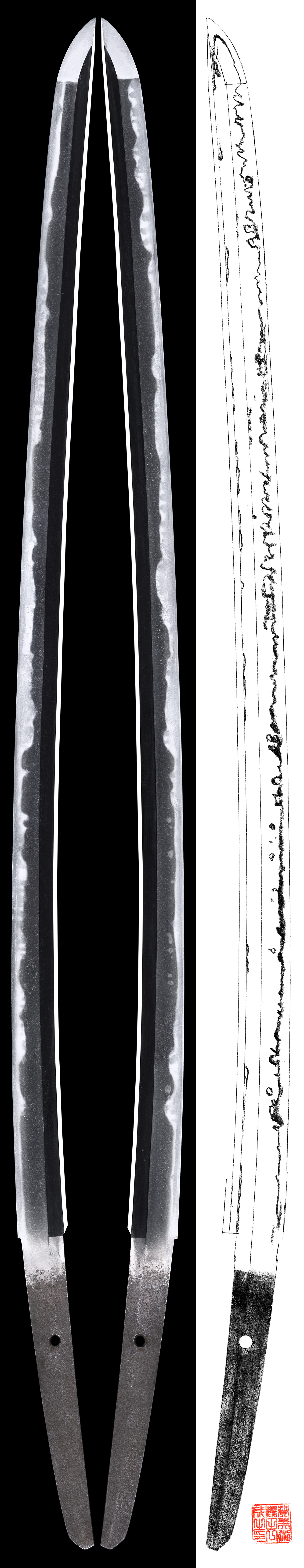 Hamon : Nioikdeki gunome midair up and down and tobiyaki work.Boshi is midarekomi round shape.