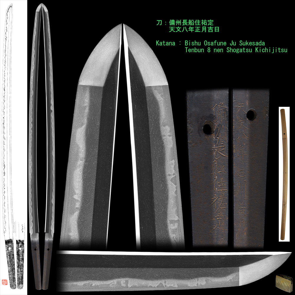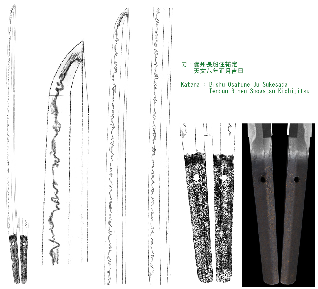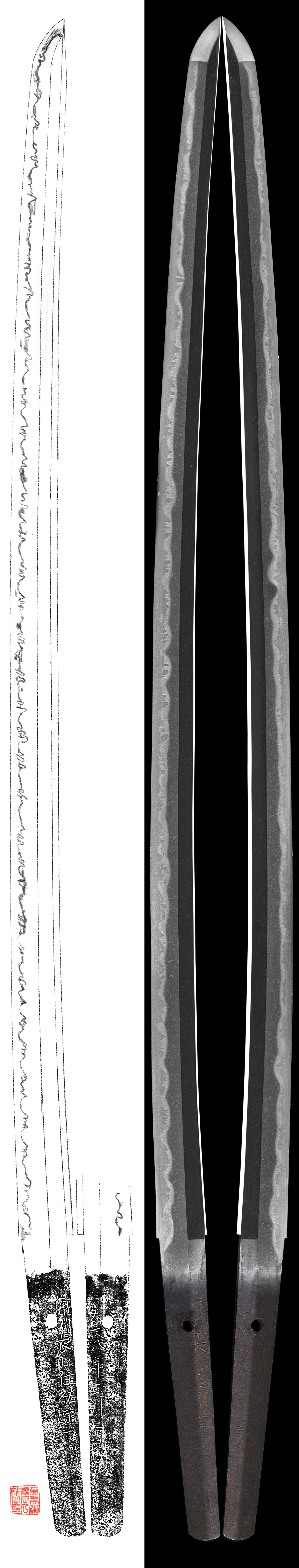 Shape : The blade is wide and thick with small sori Kanbun shape.