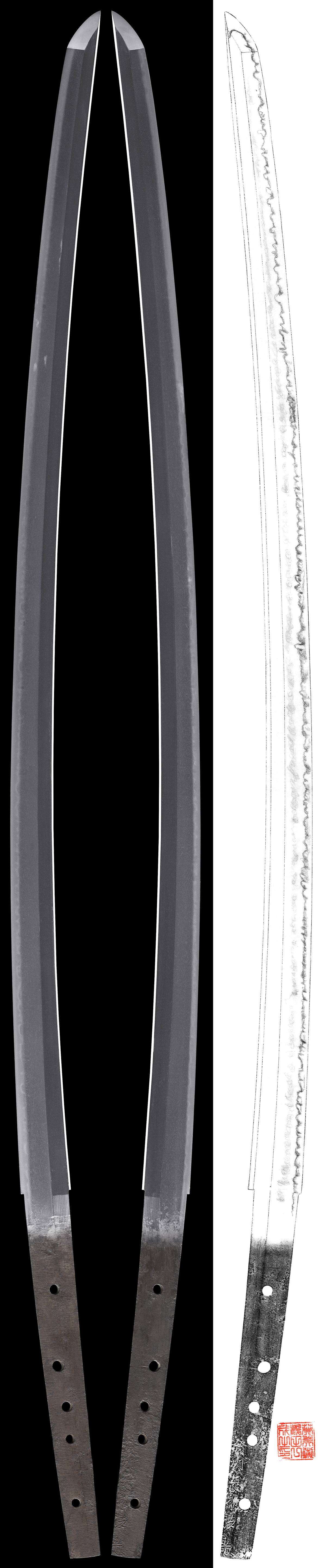 Katana in Shirasaya with Tachi koshirae.(NBTHK Tokubetsu Kicho Paper)