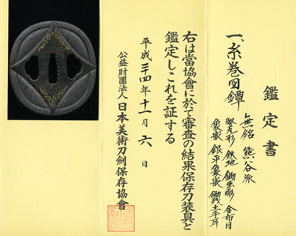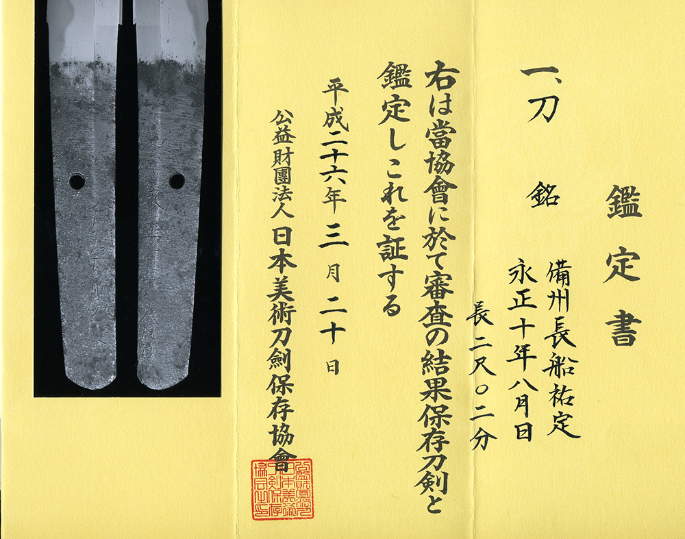 NBTHK Hozon paper for the blade and Tsuba.