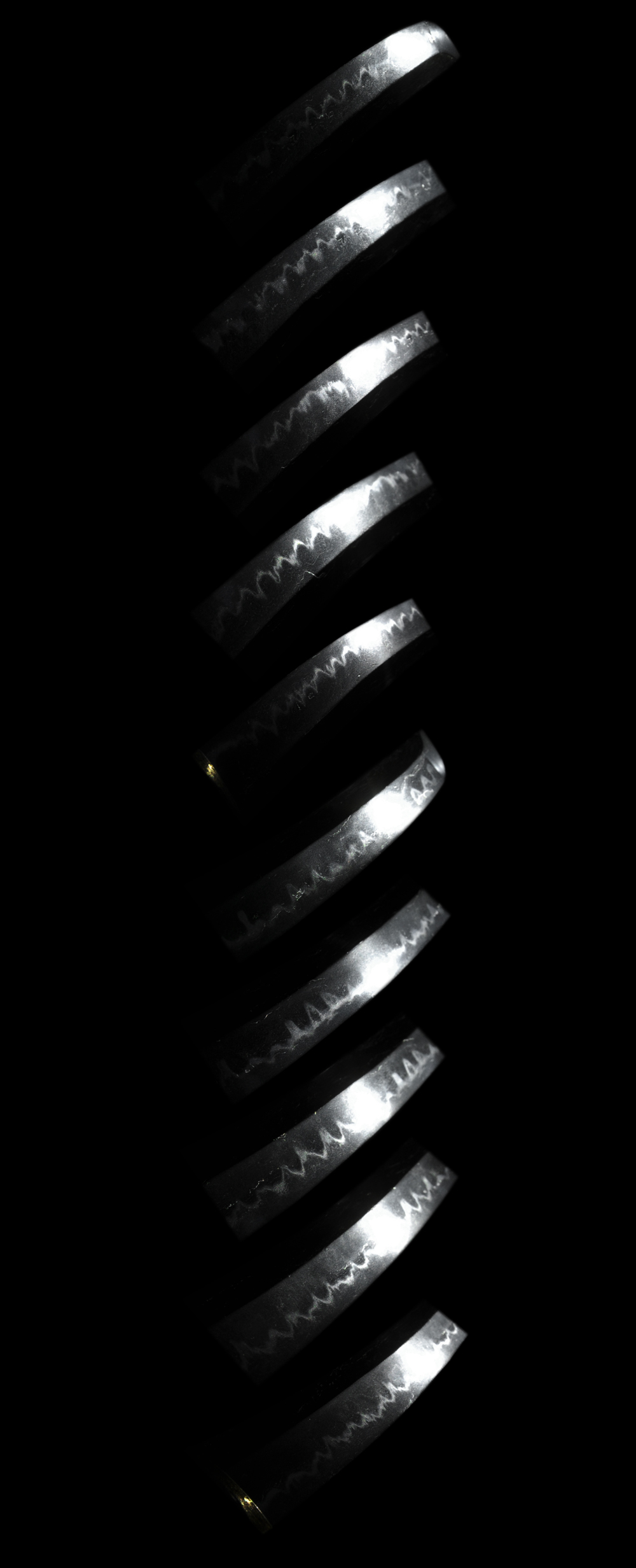 This blade has some rough skin parts, but the blade shape is very nice with deep Sori.