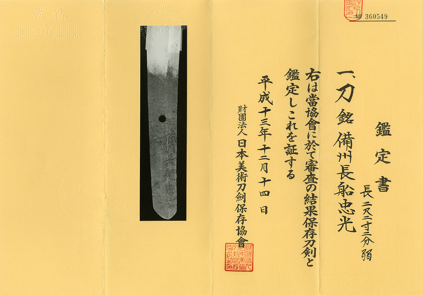 Several swordsmiths used the name Tadamitsu for generations in Osafune School of Bizen province.