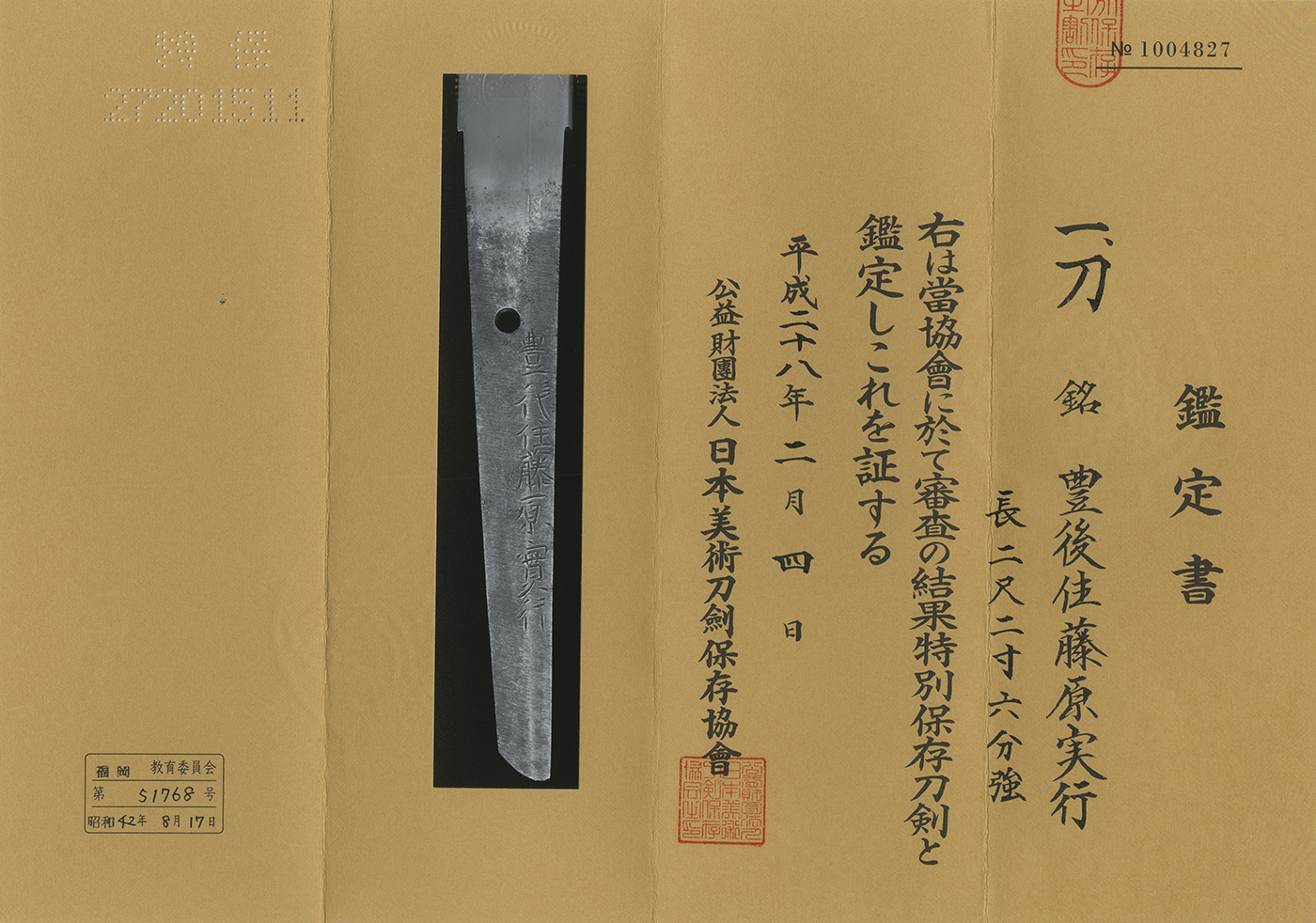 Signature : Bungo-ju Fujiwara Saneyuki (NBTHK Tokubetsu Hozon paper)
