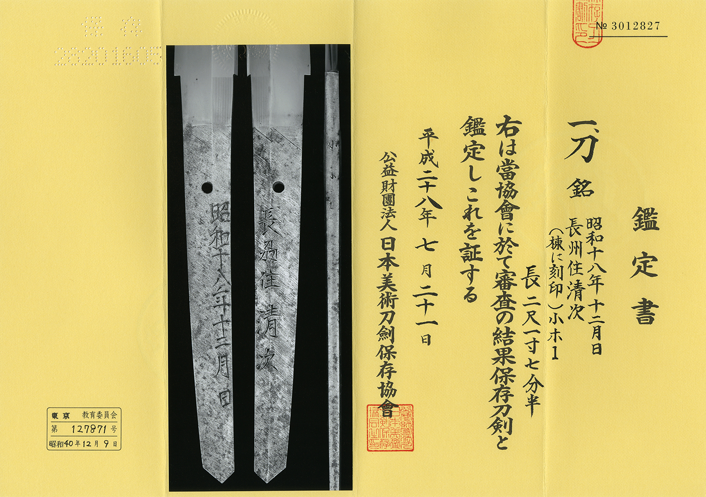 We can't see a sword forged by Choshu Ju Kiyotsugu after the war is over. I think he close down as a swords smith when Japan defeat.