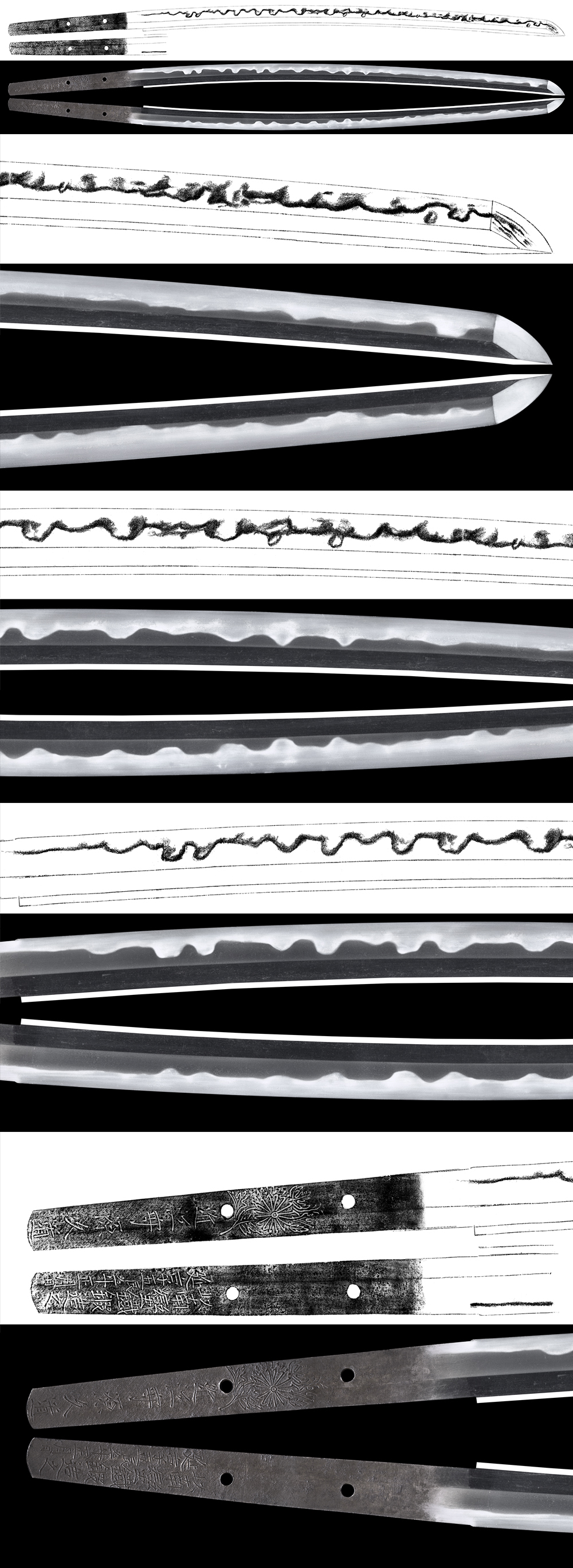 Hamon: Nie Deki Gunome Midare, deep Nioikuchi.