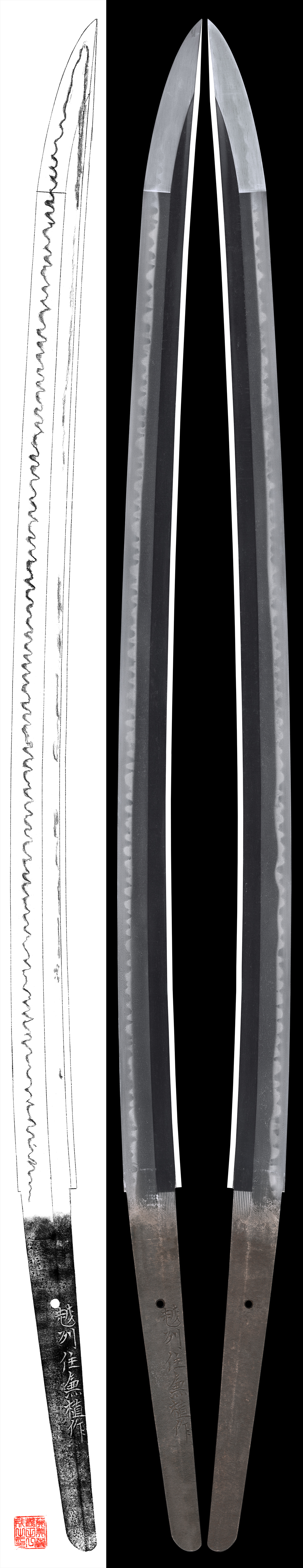 Hamon : Nie Deki, Togari-Ha. Boshi is also Togari gokoro, Jizo Fu Yakisage style.