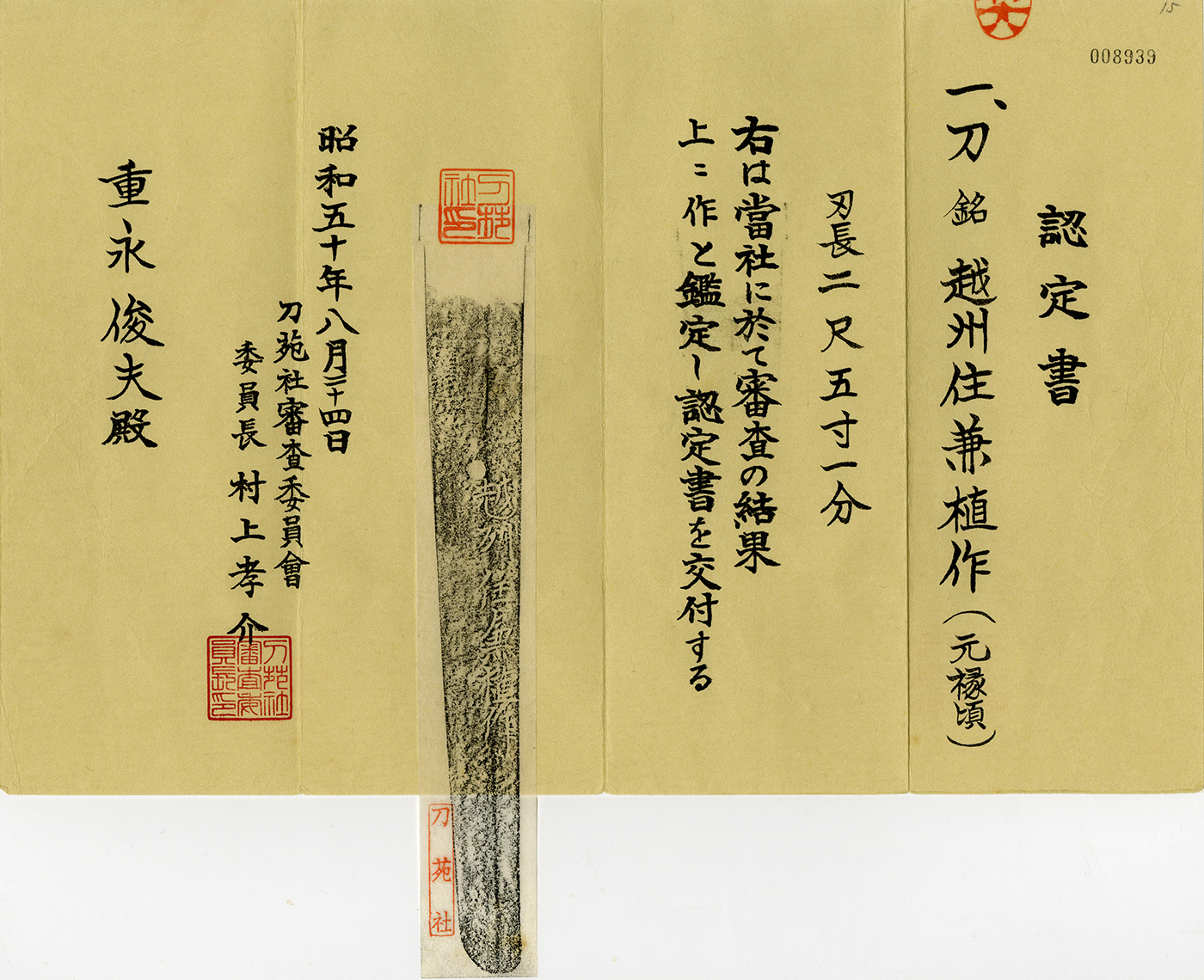 Katana in Shirasaya, with Koshirae (Toensha estimation paper)