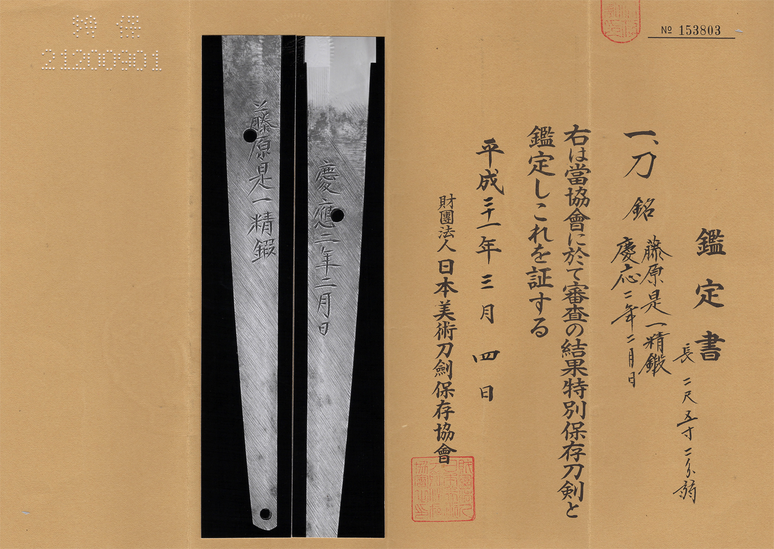 Katana : Fujiwara Korekazu Seitan/Keiou 2 Nen 2 gatsu Hi