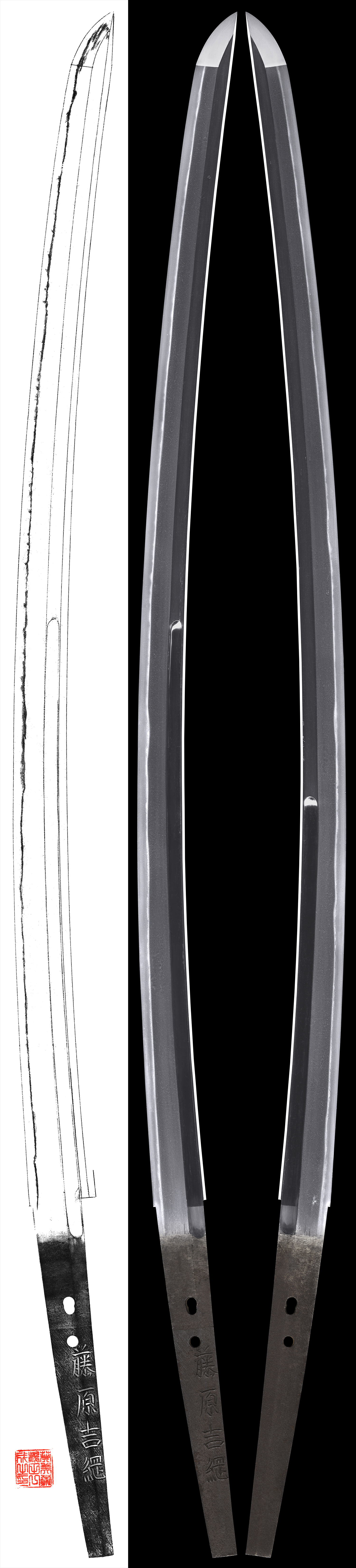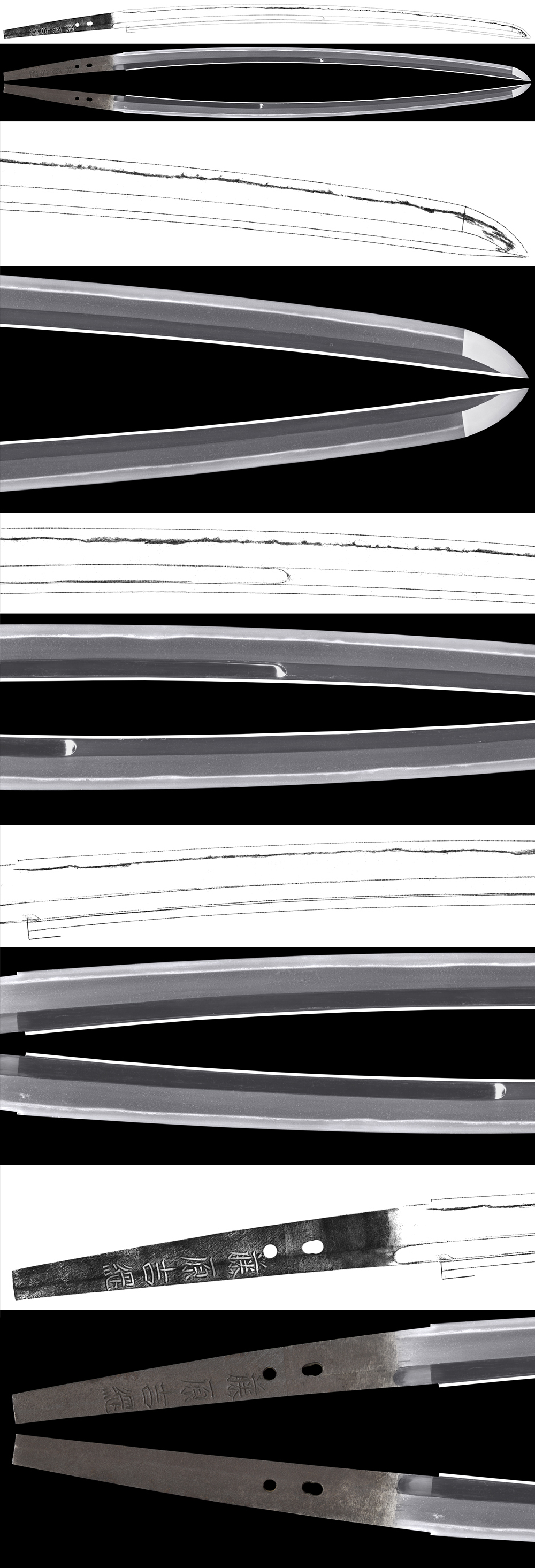 Shape : The blade is small surriage and Machiokuri with bo-hi is engraved both sides of the blade.