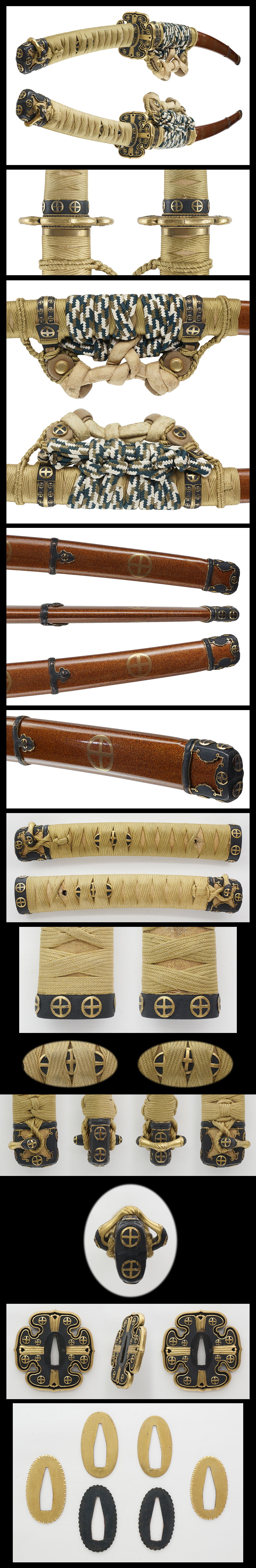 Saya : On the gold Nashiji, some shimazu family crests are painted by gold color.