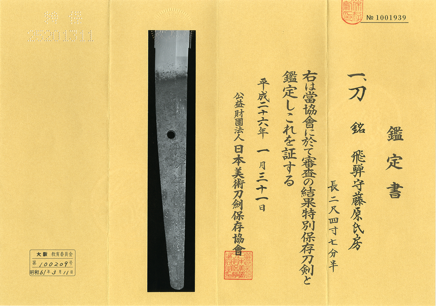 Katana : Hida Kami Fujiwara Ujifusa(1st generation)