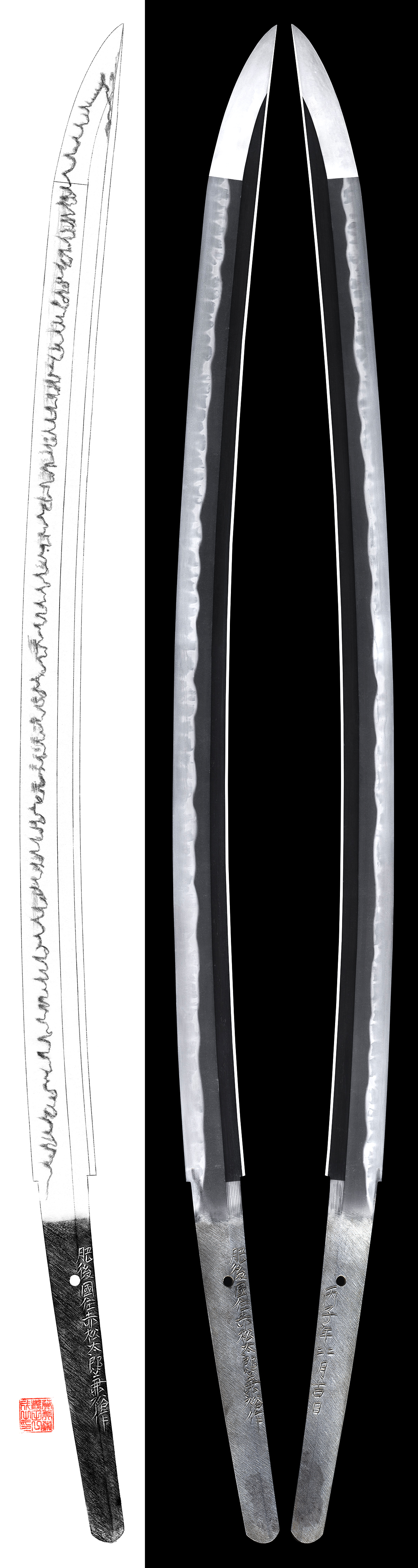It is wide and thick long kissaki magnificent katana. We recommend this piece.