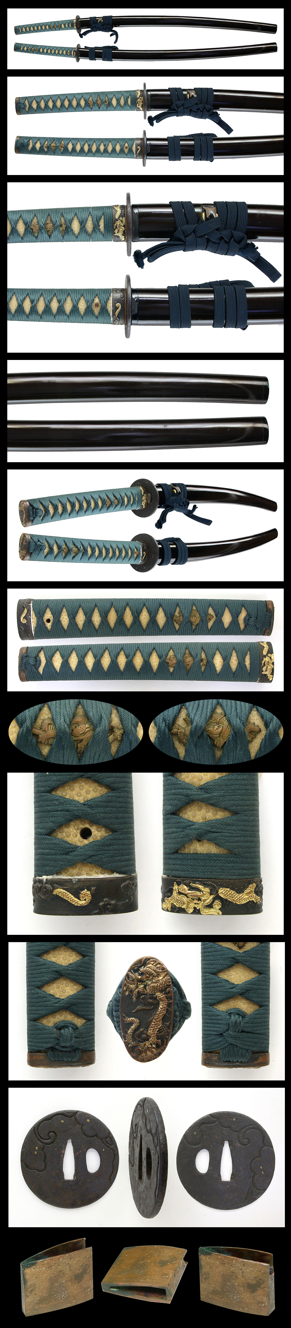 Fuchi-kashira : Dragon engraved with gold color.