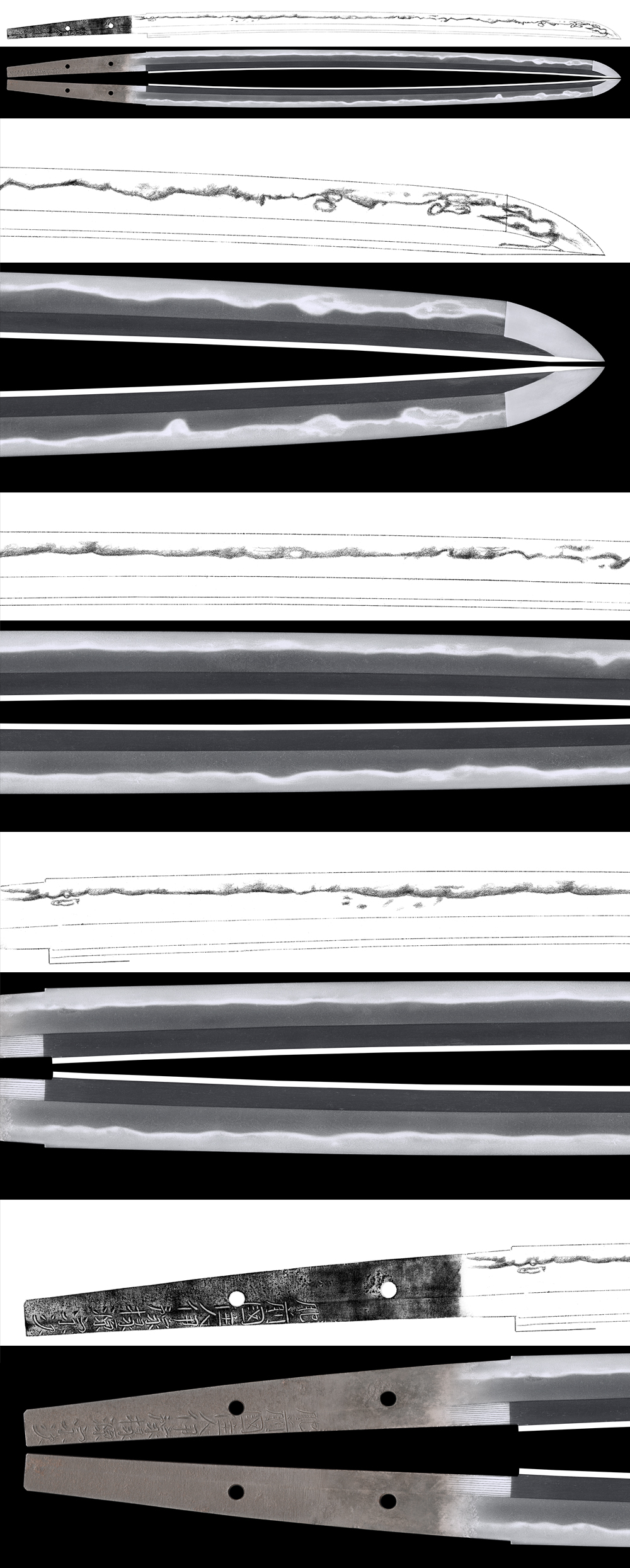 Hamon : Niedeki notare hamon and sosyu style with thick nioikuchi active hamon.
