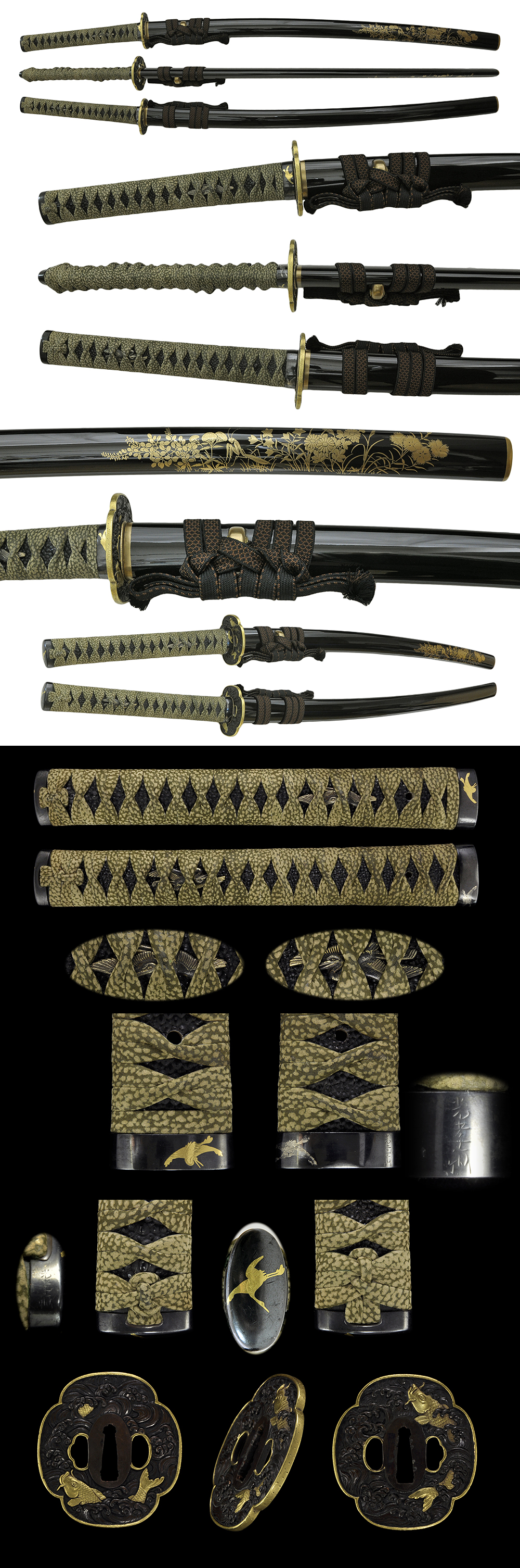 Katana in Shirasaya, with Koshirae.(NBTHK Tokubetsu Hozon Paper)(NBTHK Hozon Paper for Fuchikashira)