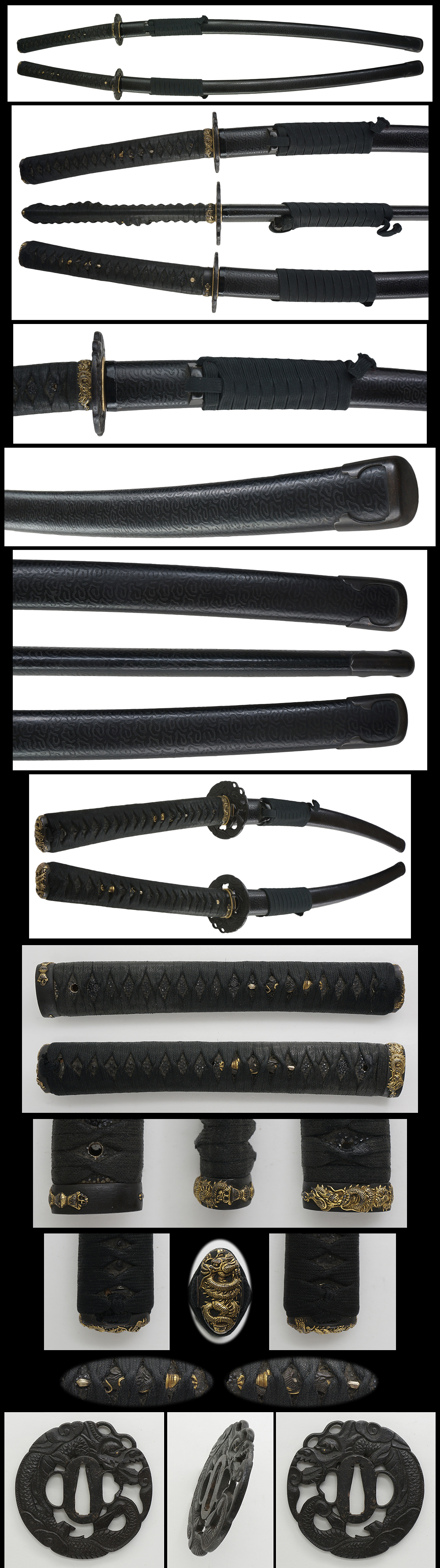 Saya : Black Roiro saya with cloud design engraved.