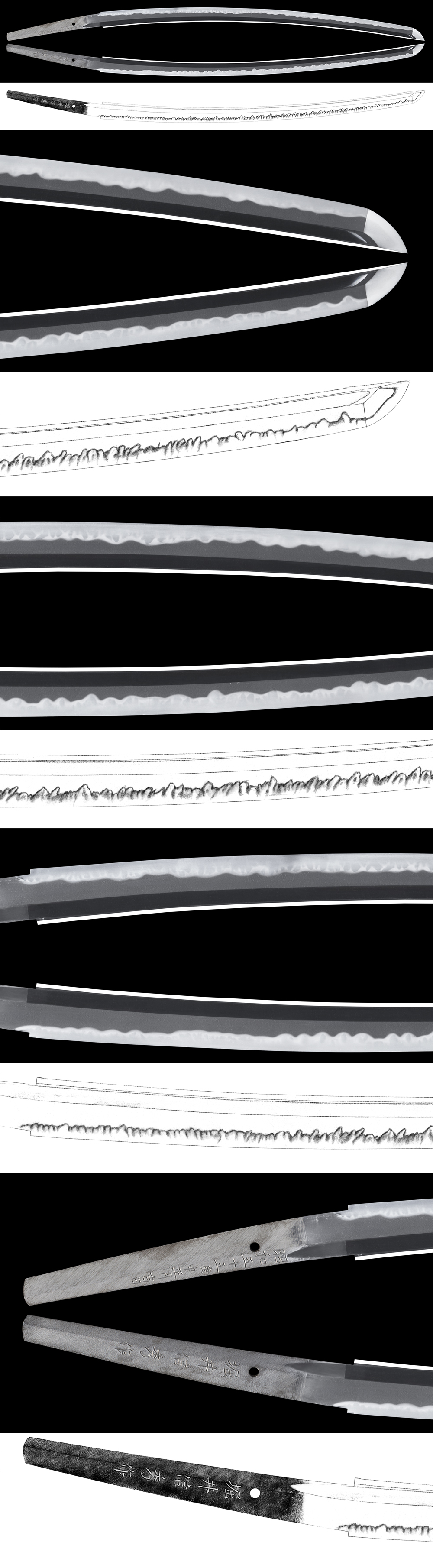 Hamon : Niedeki Cyoji midair hamon up and down with ash, yo and also sunagashi, kinsuji work.