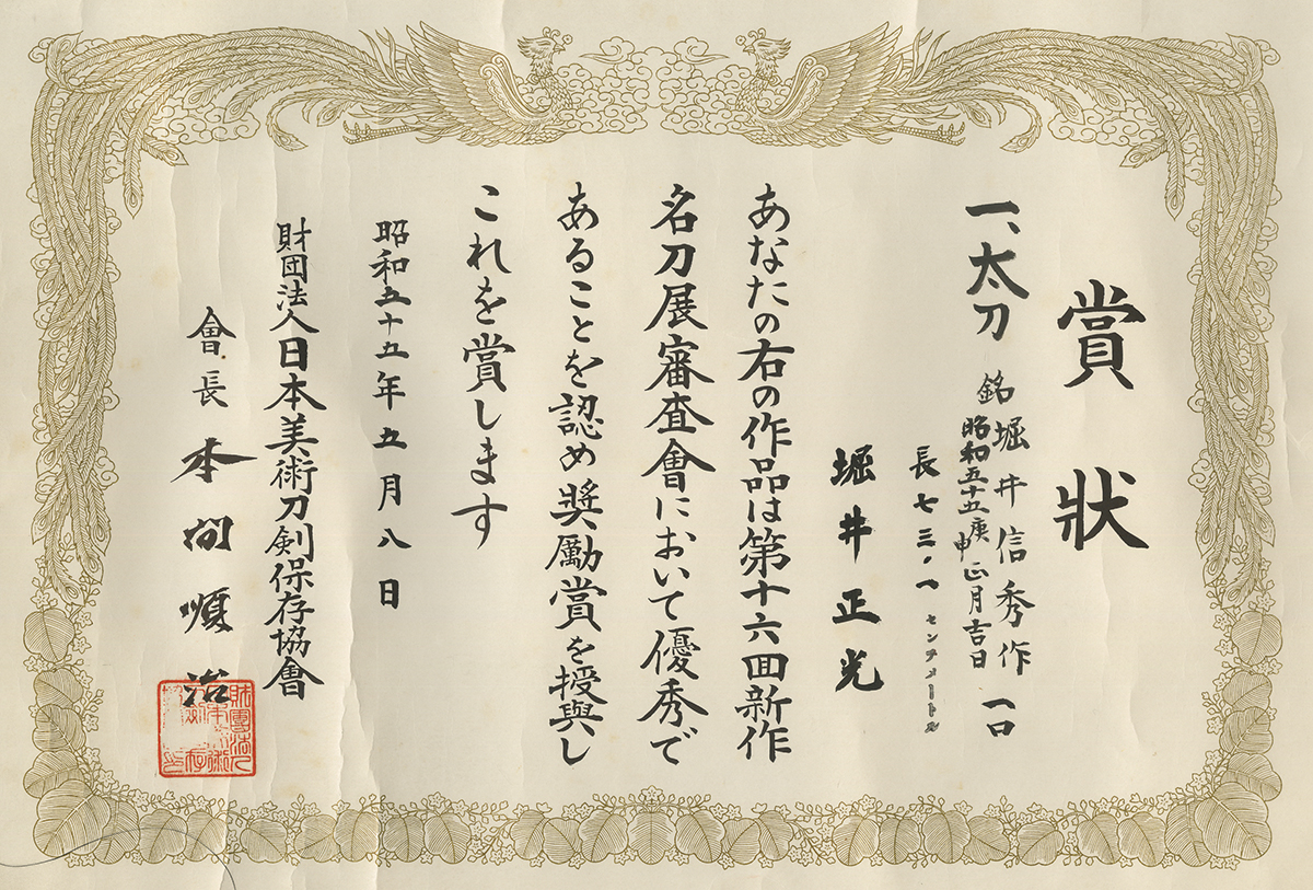 second generation was Horii Taneaki and 3rd generation was Horii Toshihide who made many swords during war time and achieved high reputation.