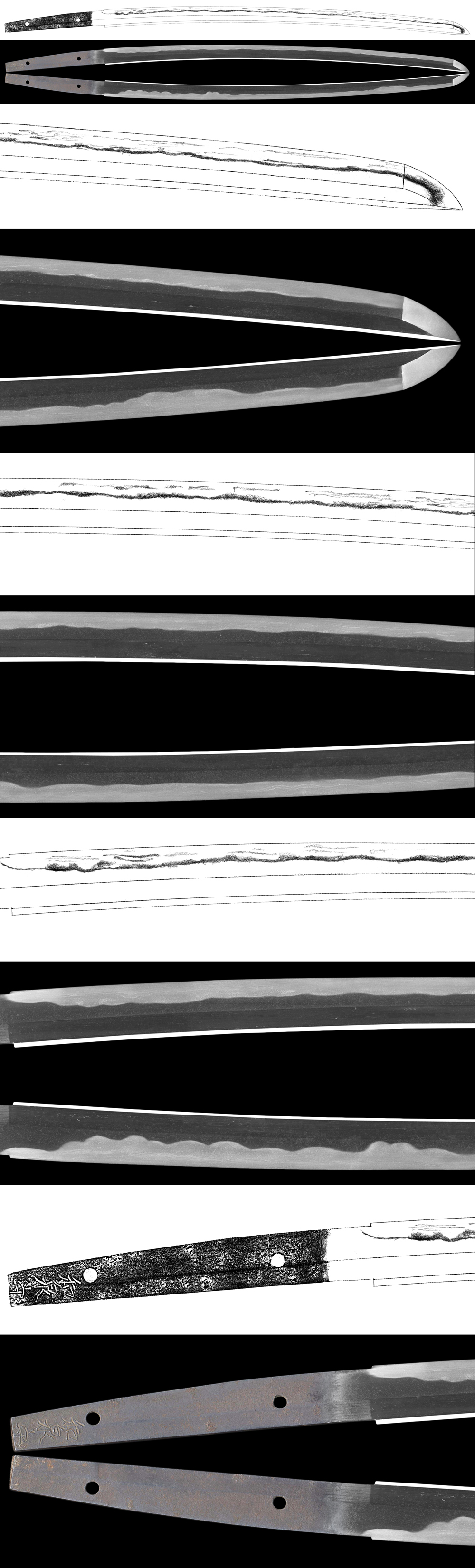 Hamon : Niedeki gunome midare with sunagashi and small kinsuji double hamon and also ashi work.