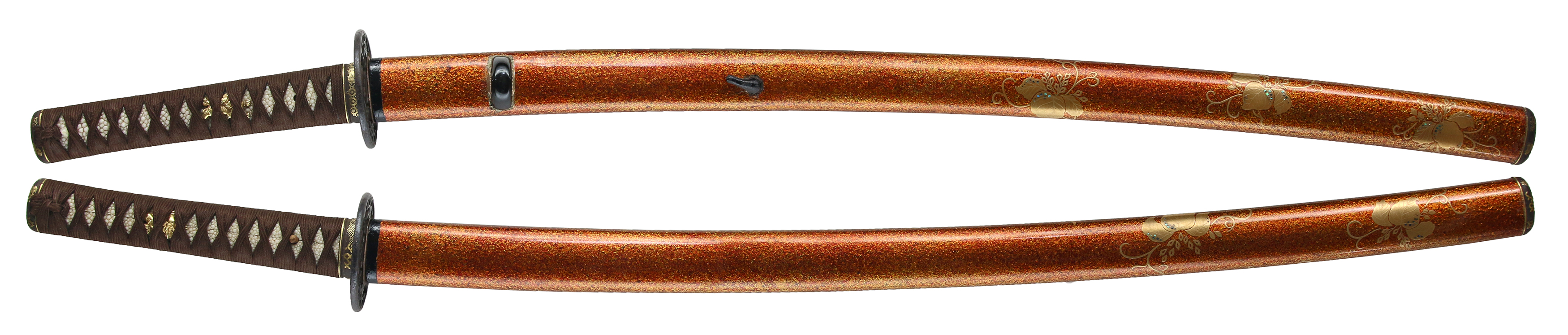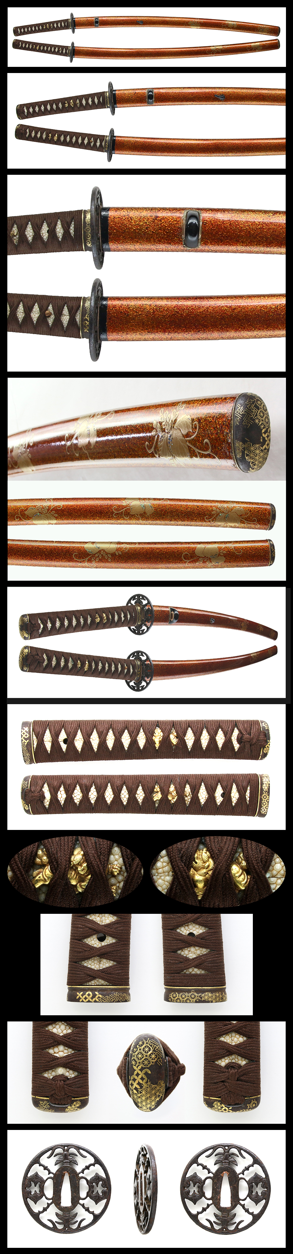 Koshirae : brilliant gold Nashi-ji with gold Makie.